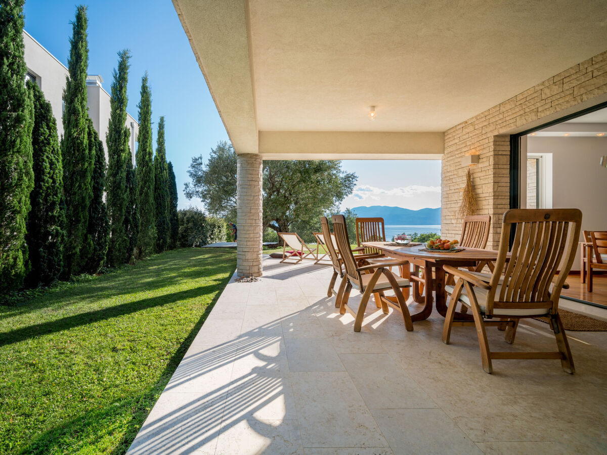 Douche extérieure, terrasse (15 m2), meubles de jardin.