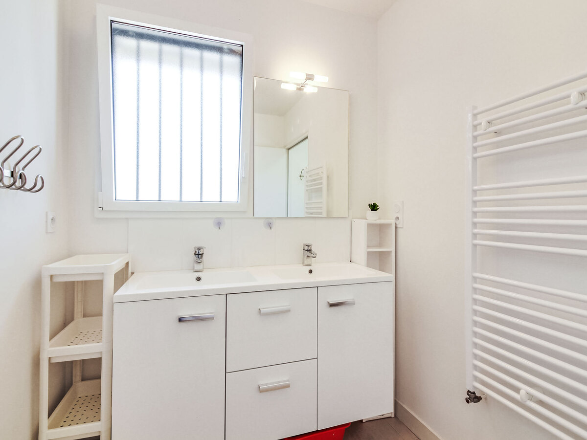 Douche, WC séparé, double vasque.
