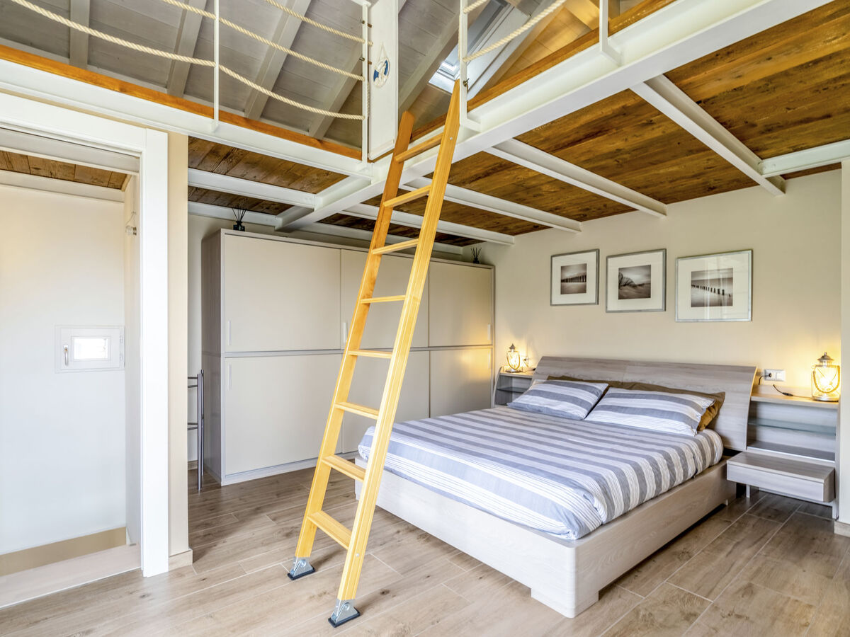 À l'étage supérieur: (escalier en colimaçon) 1 chambre, sur 2 niveaux avec 1 grand-lit (160 cm), 2 couchages.