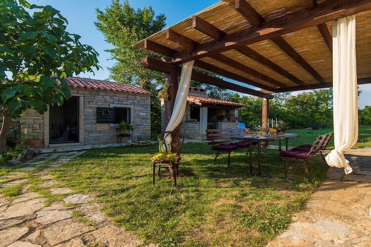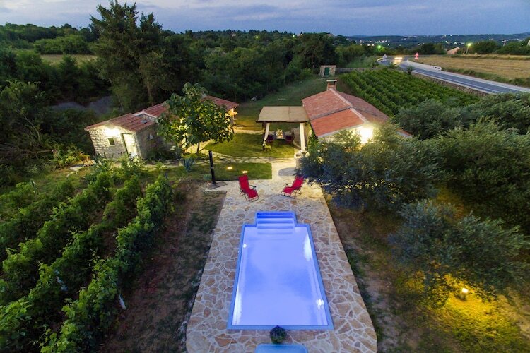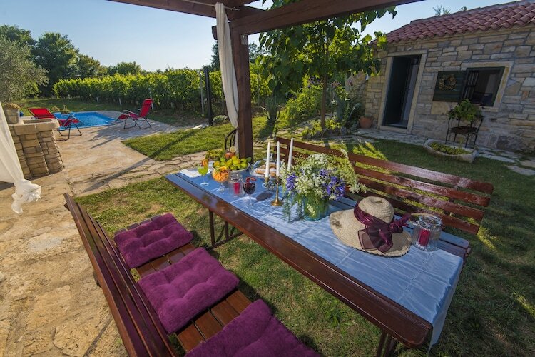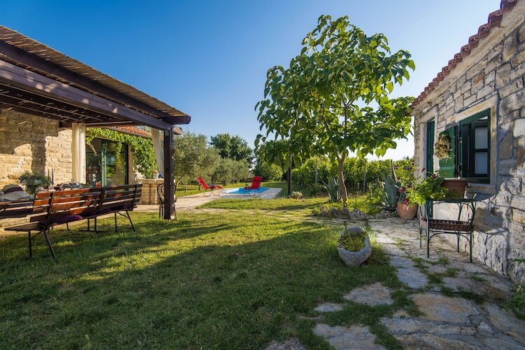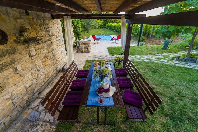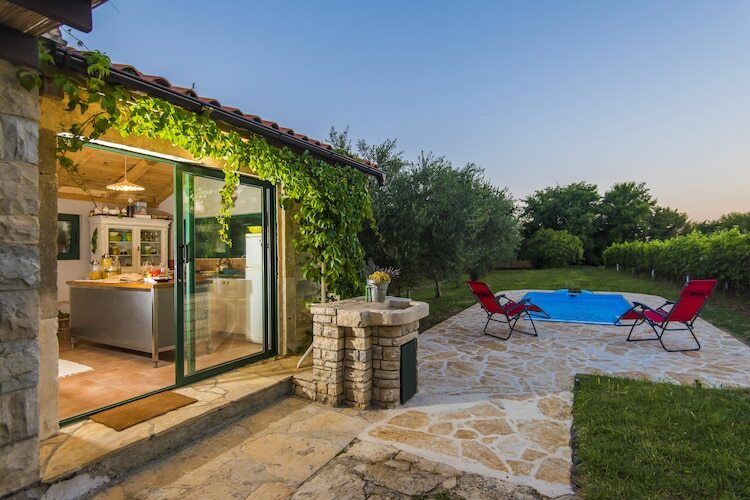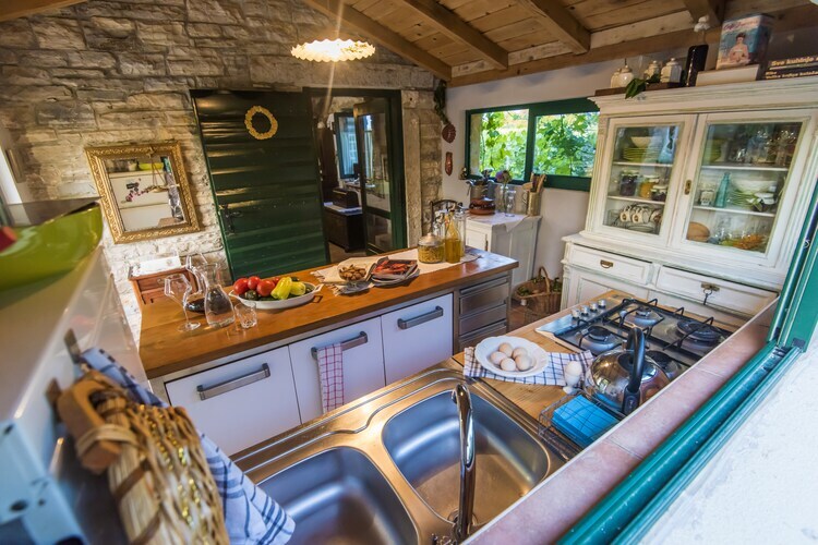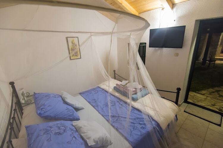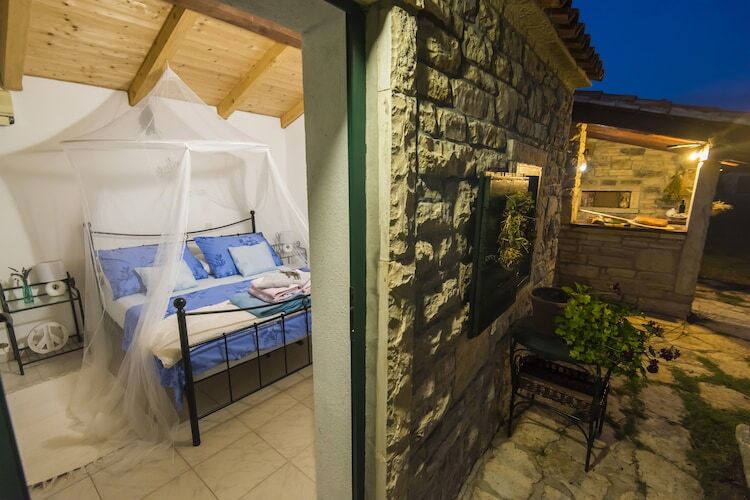 La maison est nouvellement construite dans l'architecture dalmatienne traditionnelle. L'espace de vie est lumineux et spacieux avec une salle à manger, une cuisine moderne et une chambre confortable avec lit double, télévision et climatisation. Les enfants ont un lit bébé à utiliser. La terrasse avec la cheminée extérieure et le jardin meublé est idéal pour se détendre profiter des forêts environnantes et des vignobles. 1 animal de compagnie est autorisé à 10 € / nuit. Le parking est également organisé._x000D_