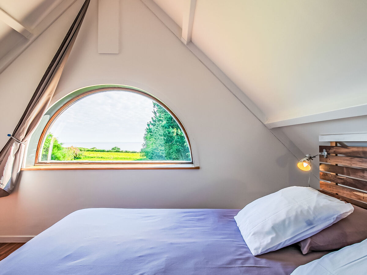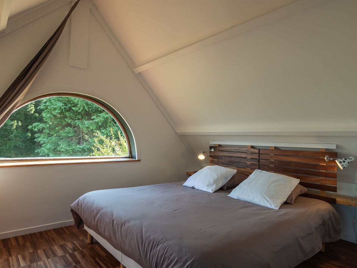 À l'étage supérieur: 1 chambre, mansardée avec 1 lit double (2 x 90 cm, longueur 200 cm).