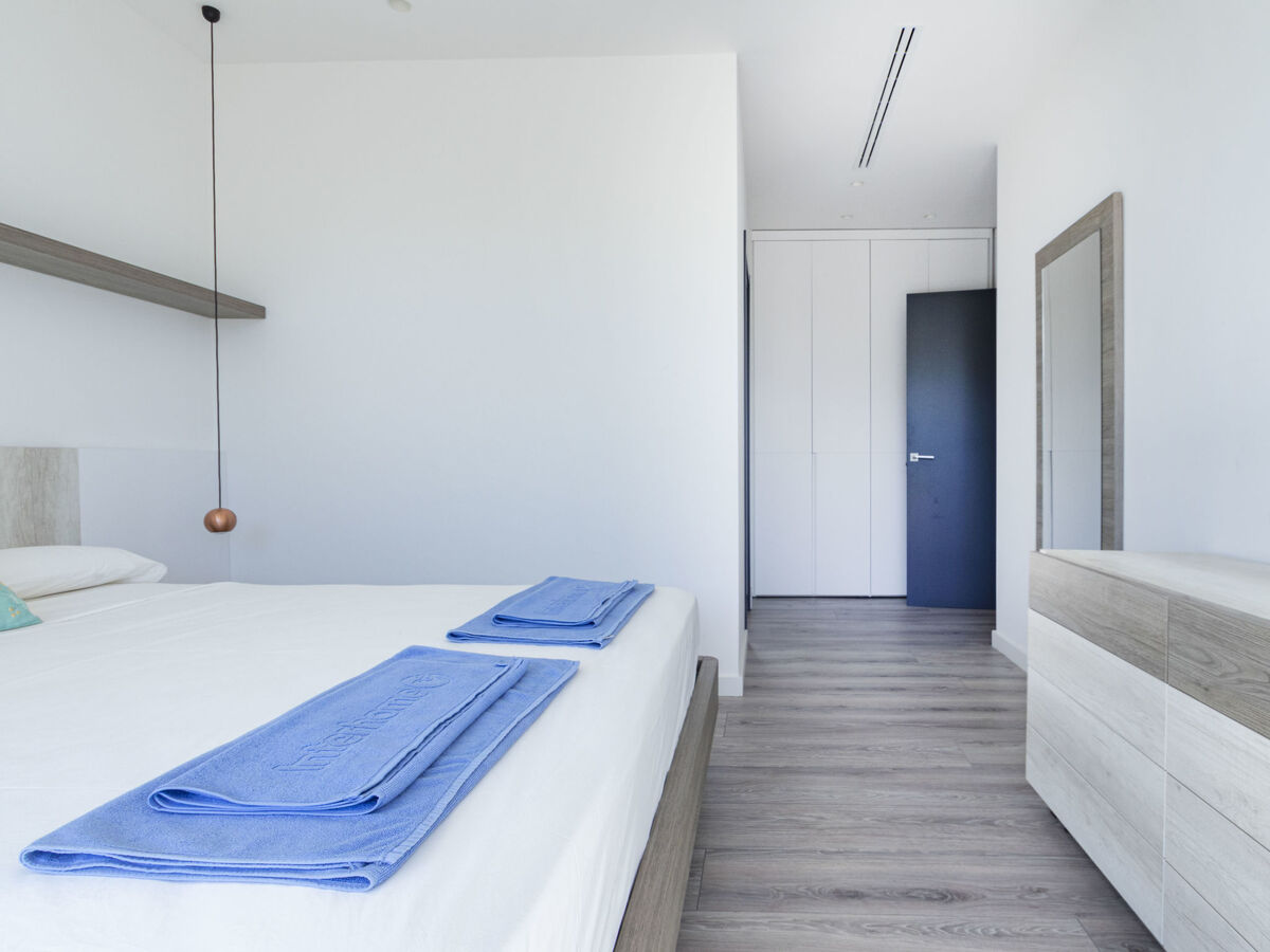 1 chambre avec 1 grand-lit (160 cm), douche/WC.