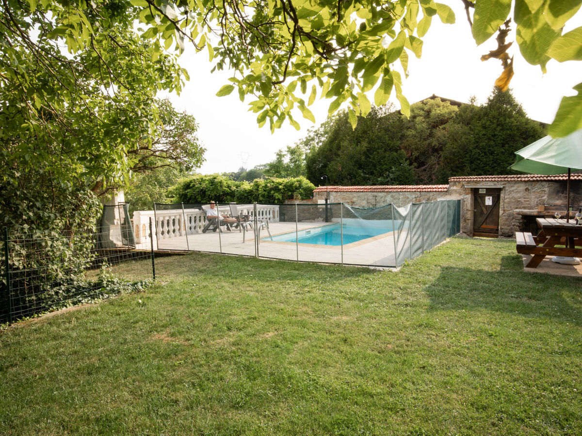 A usage privé: jardin 400 m2 (clôturé) avec plantes, champ, piscine cloturée (7 x 3 m, 25 m2, profondeur 150 - 210 cm, disponibilité saisonnière: 01.Mai.