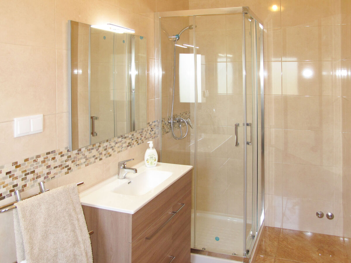 1 chambre avec 1 grand-lit (150 cm), douche/WC et radiateur électrique.