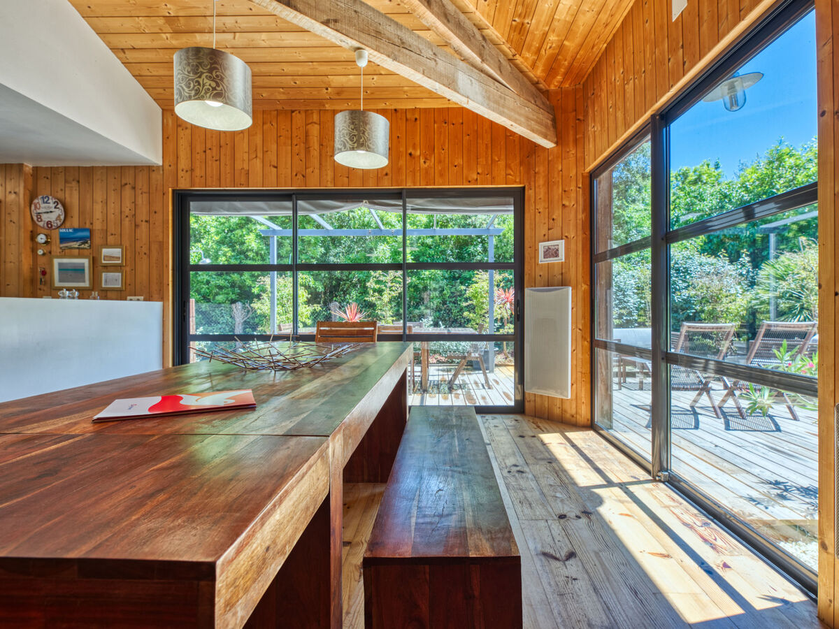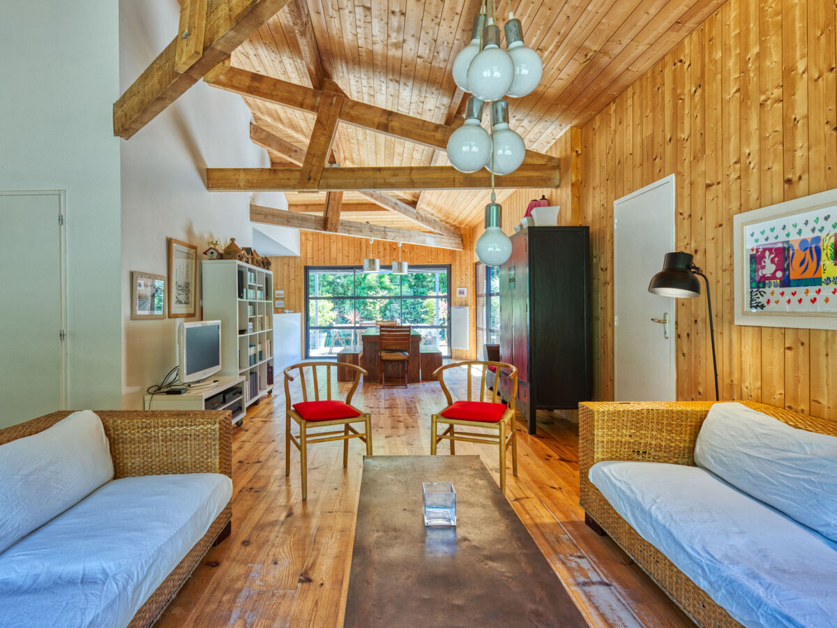 Spacieux et clair, aménagement confortable et de bon goût: grand séjour/salle à manger avec baie vitrée avec table pour les repas et TV (écran plat), chaîne stéréo.