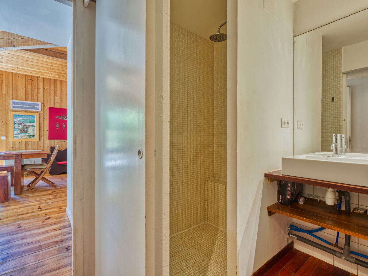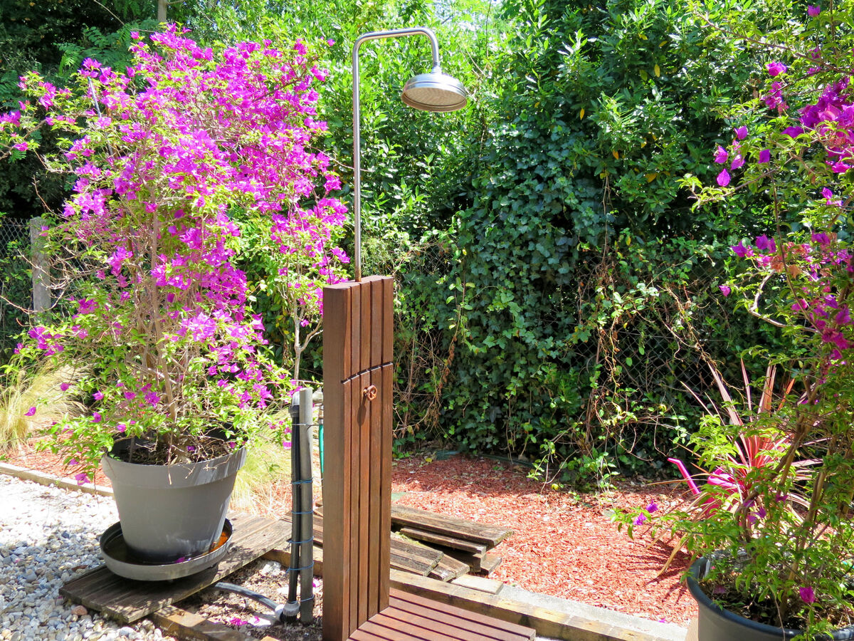 Douche extérieure, place de parking (pour 2 voitures) près de la maison sur le terrain, parking public possible dans la rue.