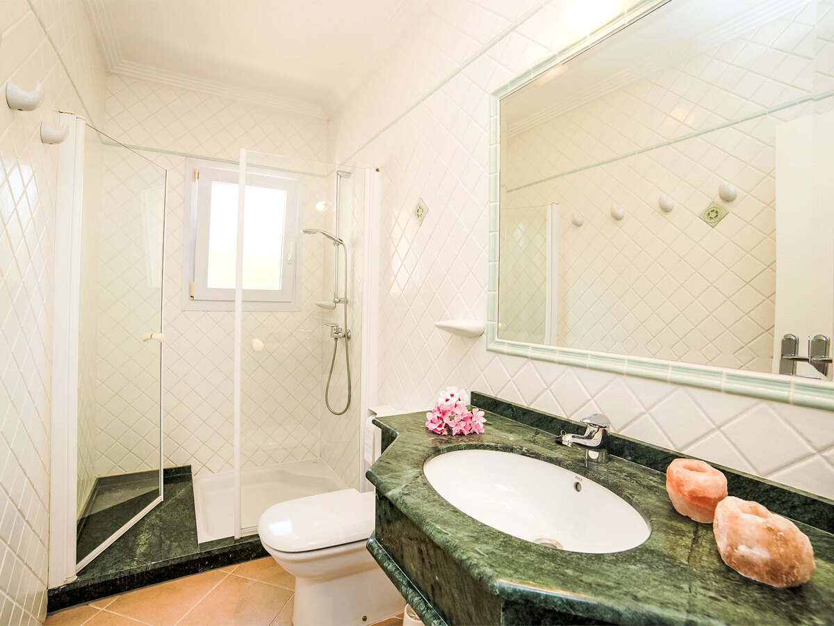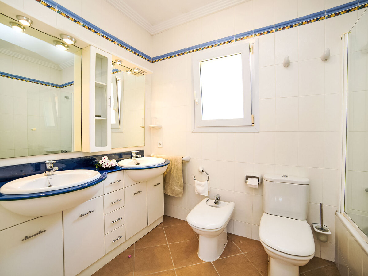1 chambre avec 1 grand-lit, bain/bidet/WC, double vasque, air-conditionné et chauffage à air chaud.