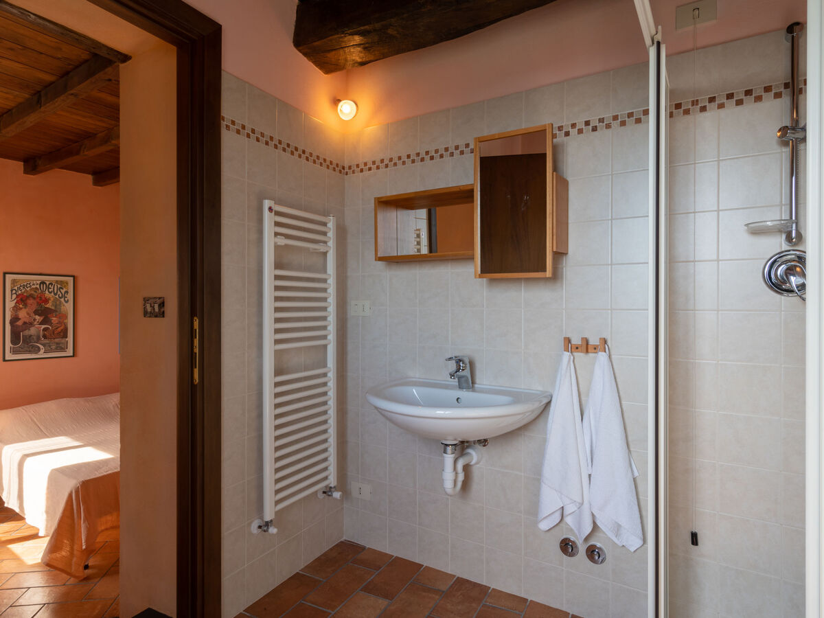 À l'étage supérieur: 2 chambres, chaque chambre avec: 1 lit double (160 cm), douche/bidet/WC.