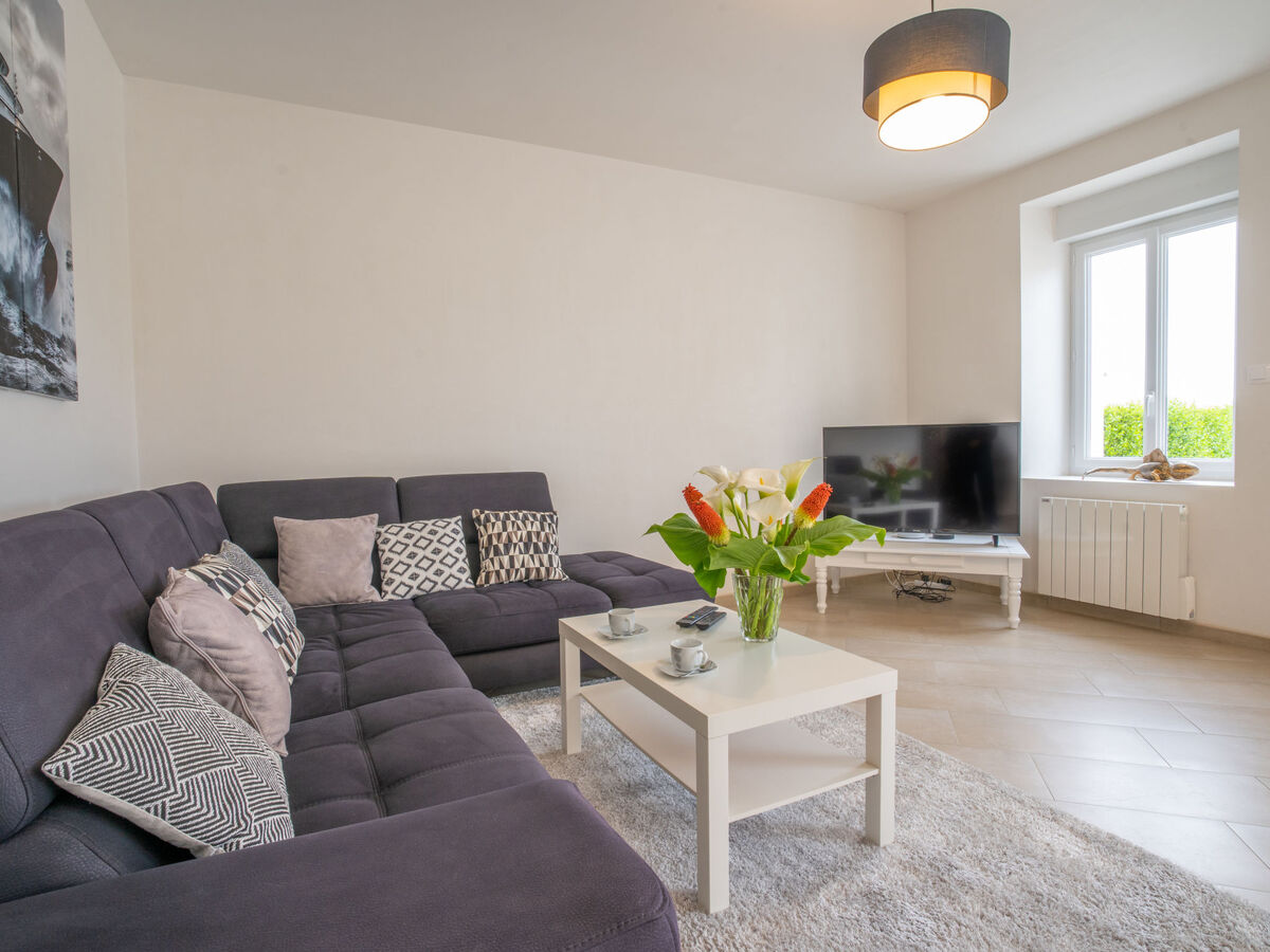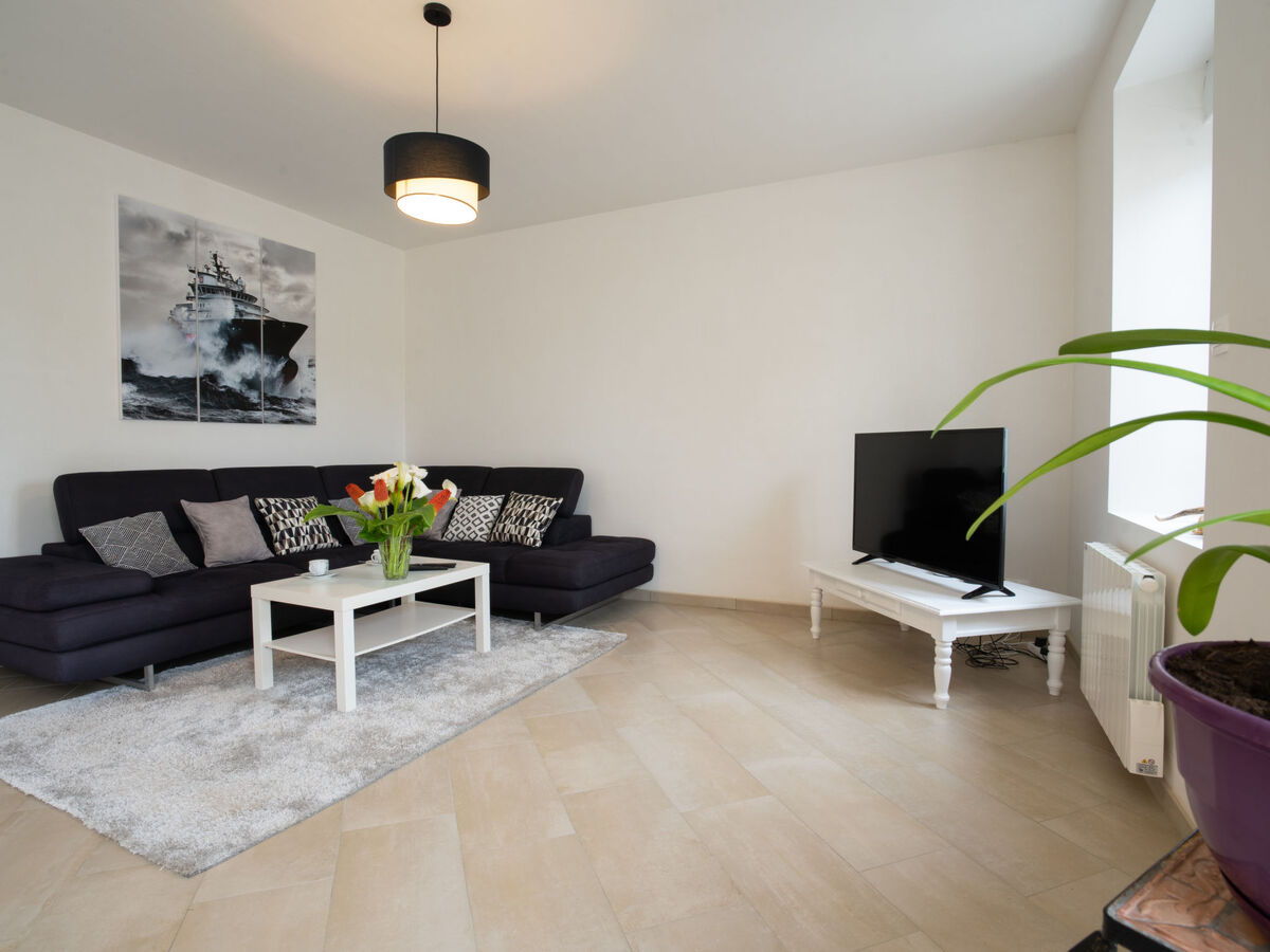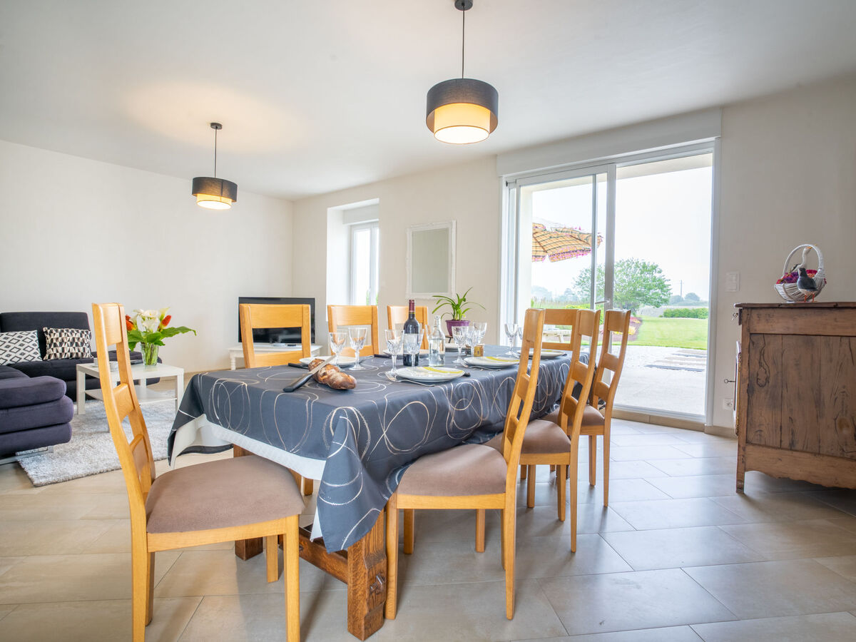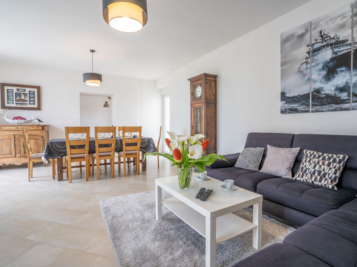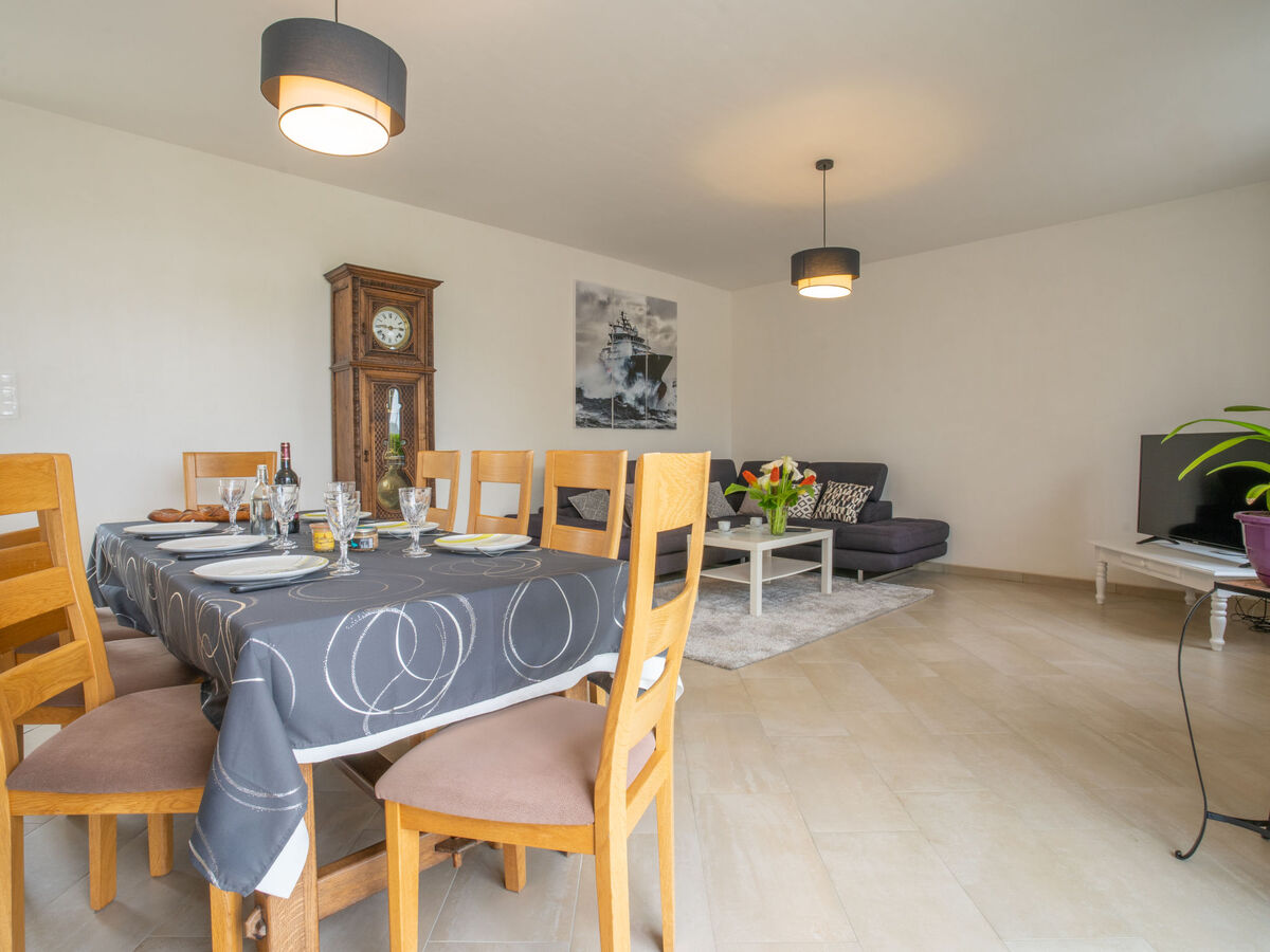 Clair, aménagement confortable et moderne: séjour/salle à manger avec table pour les repas et TV.