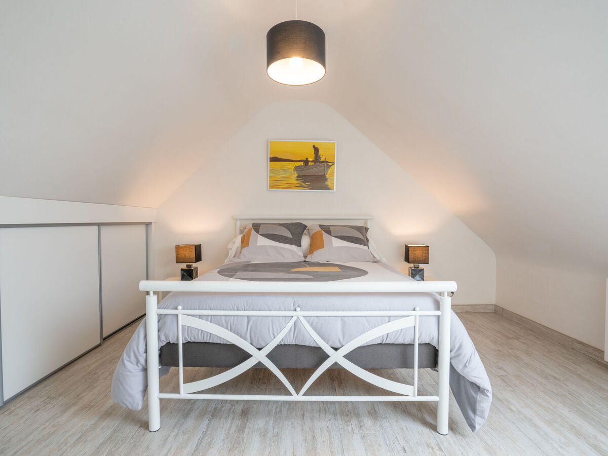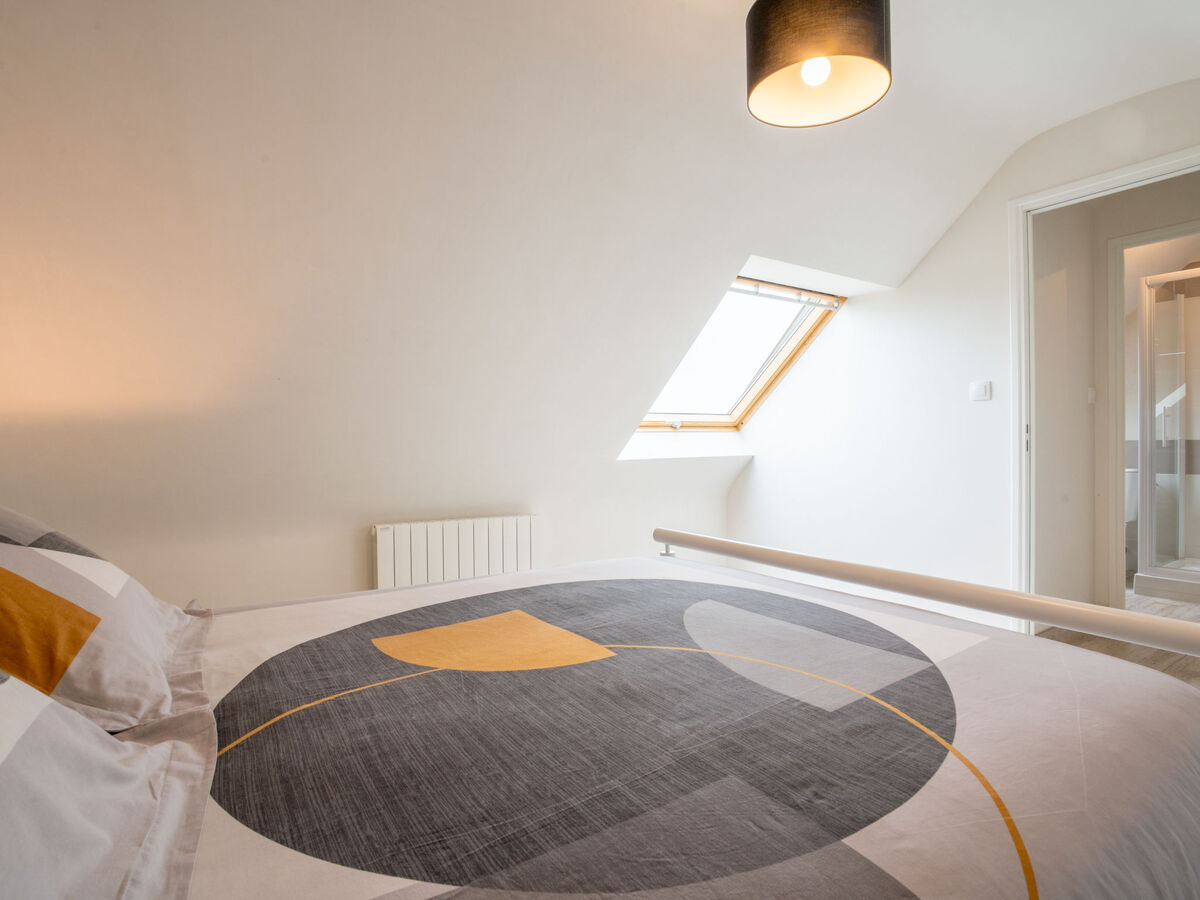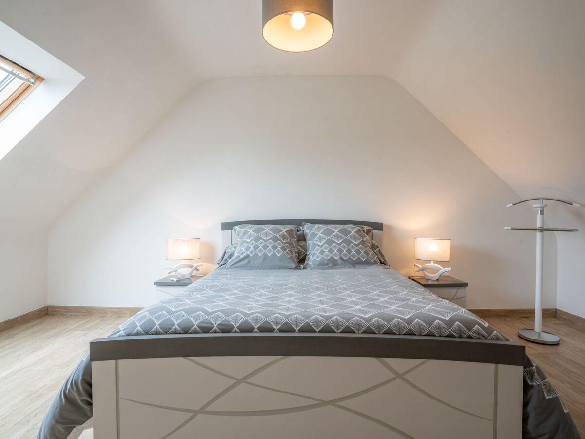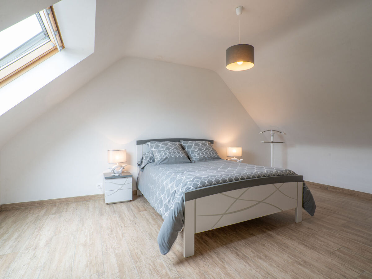 1 chambre, mansardée avec 1 grand-lit (140 cm, longueur 190 cm).