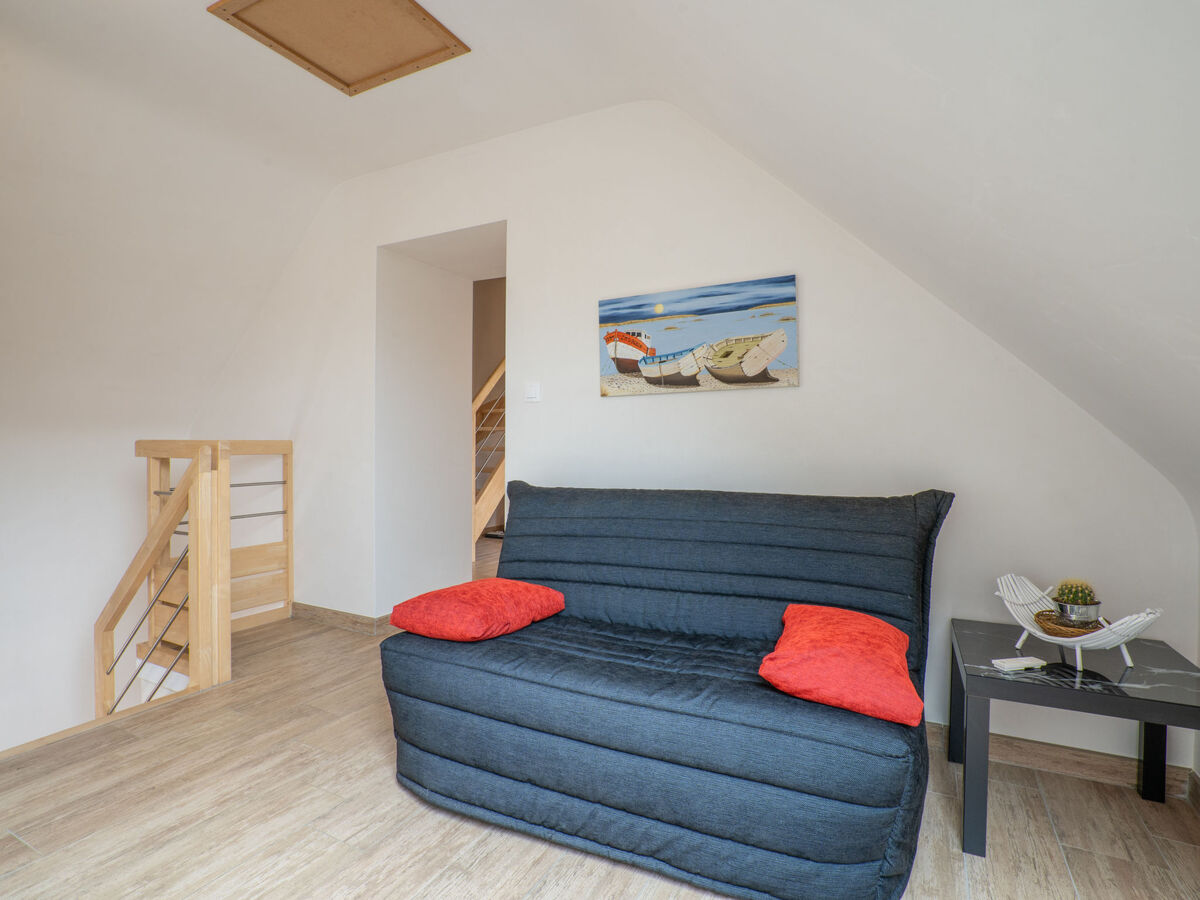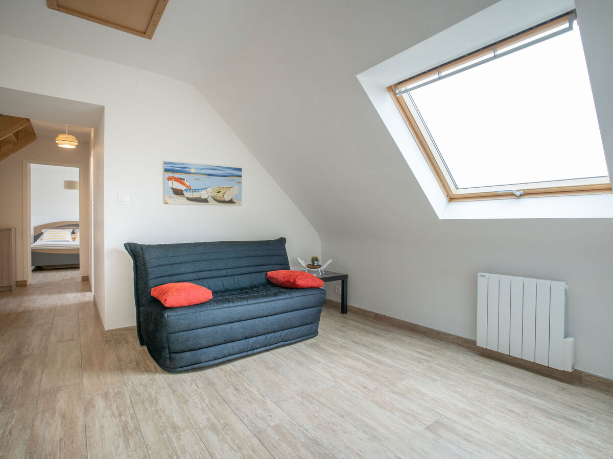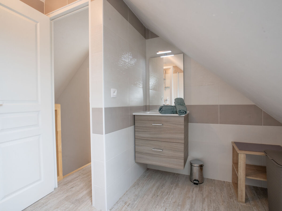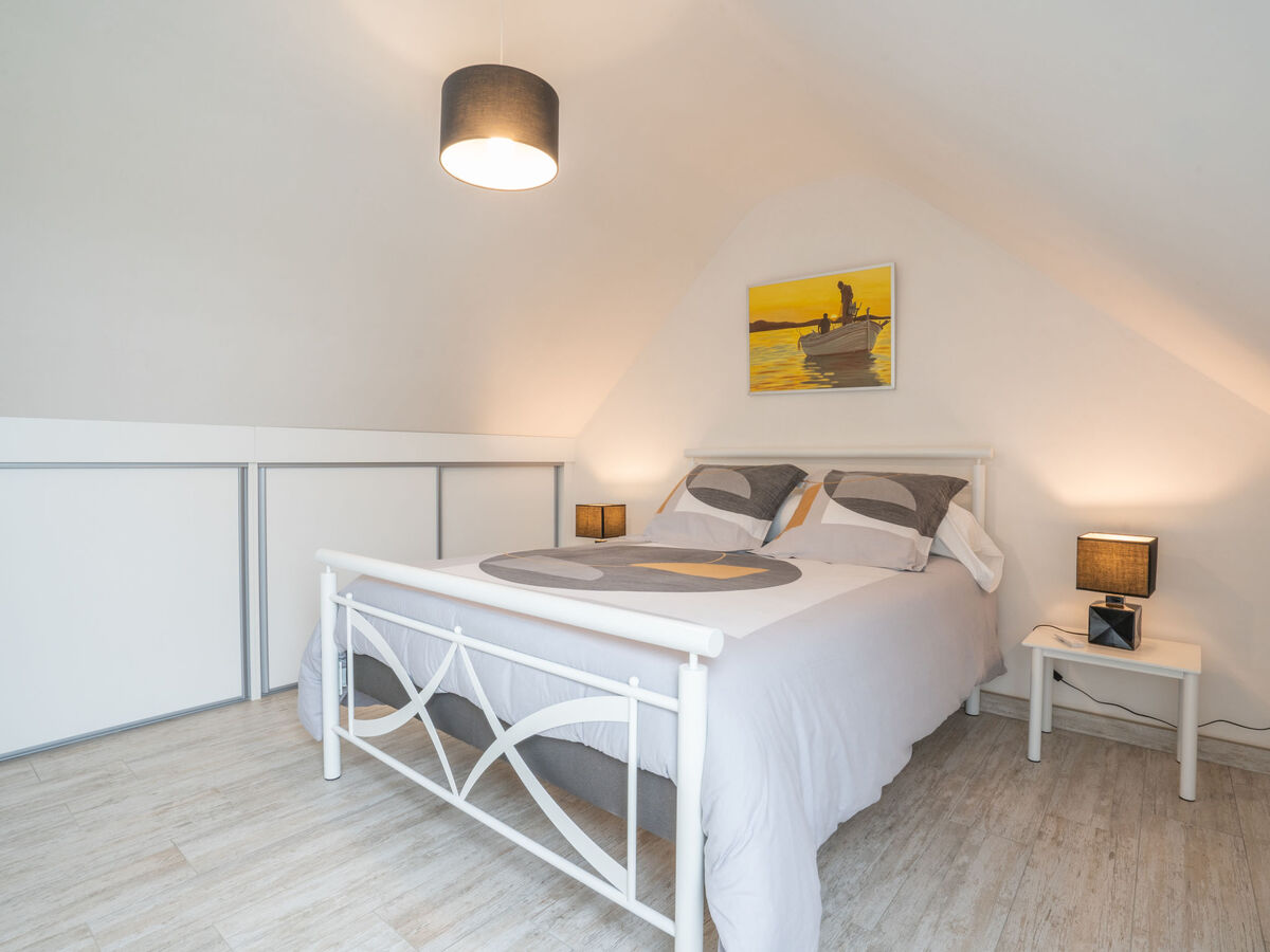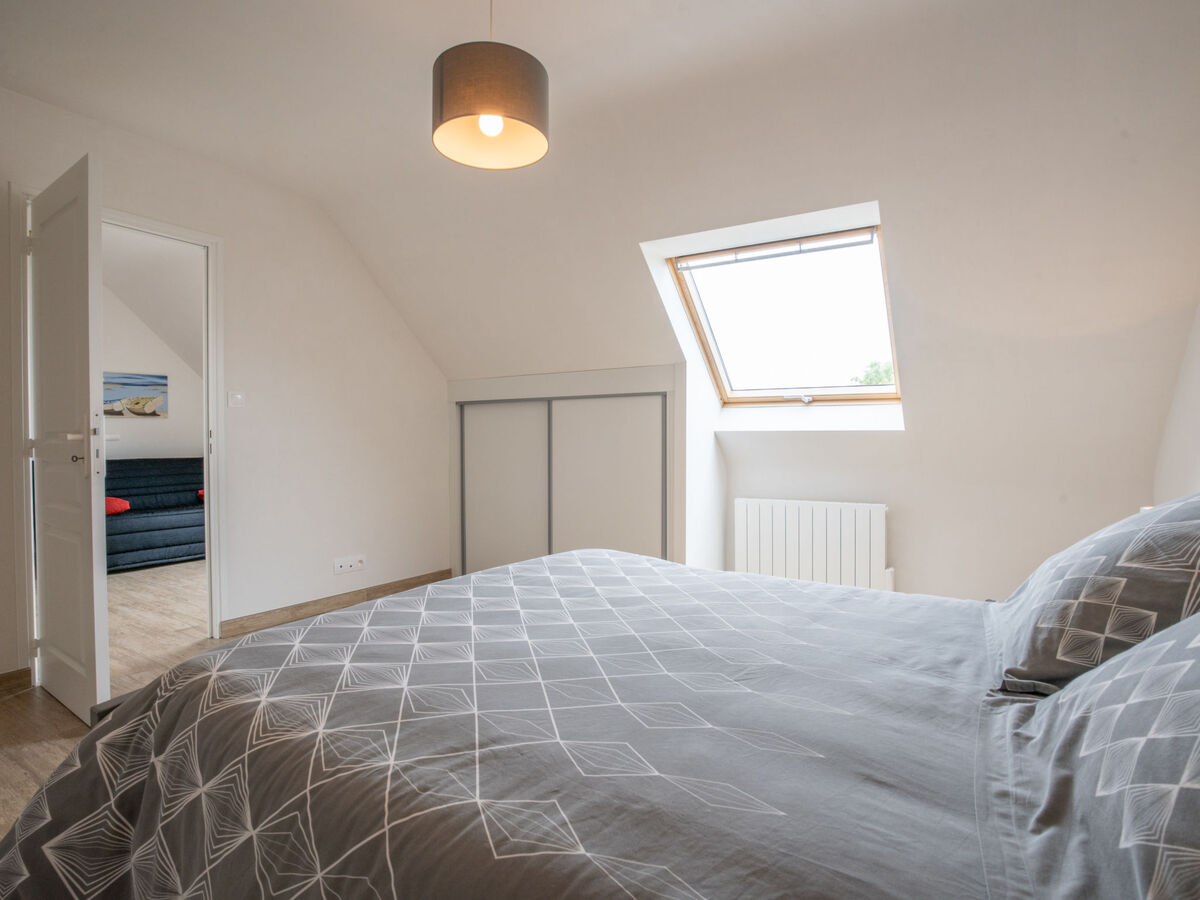 1 chambre, mansardée avec 1 grand-lit (140 cm, longueur 190 cm).