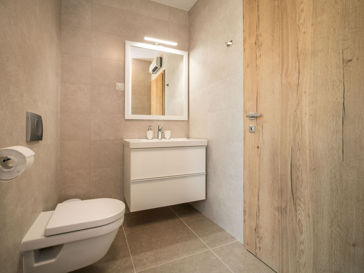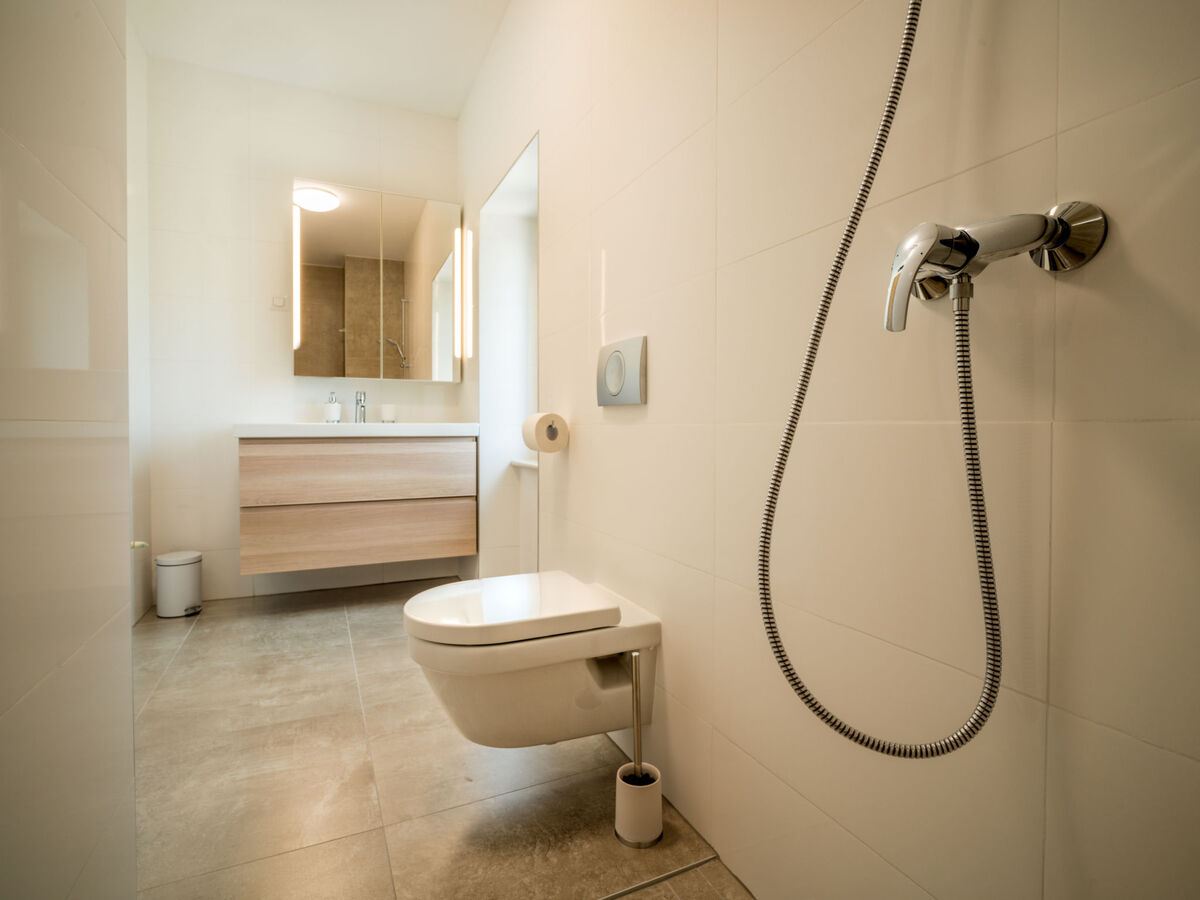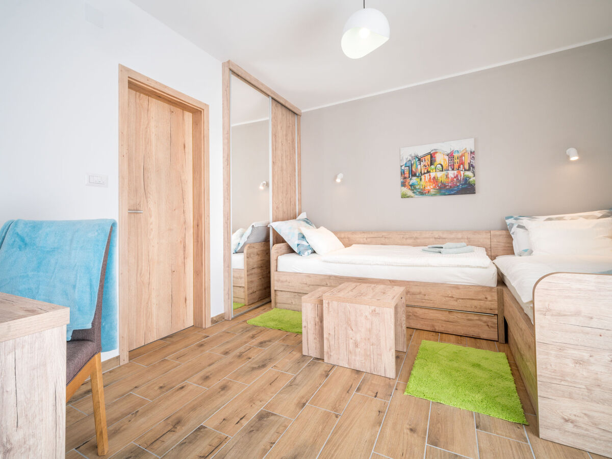 1 chambre avec 2 lits (90 cm, longueur 200 cm), bain/WC et air-conditionné.