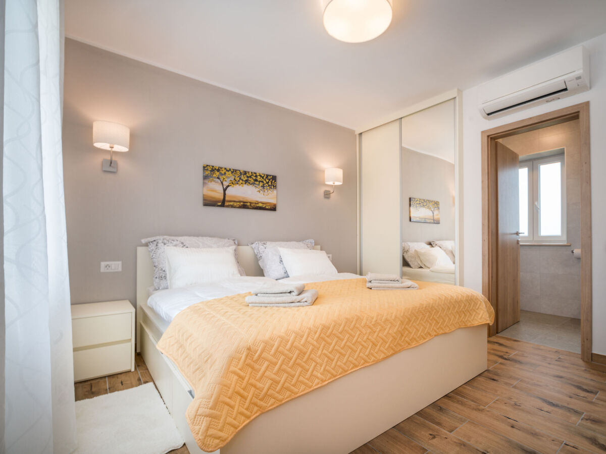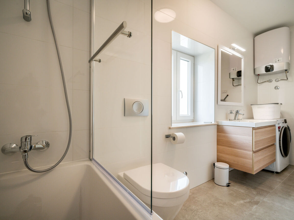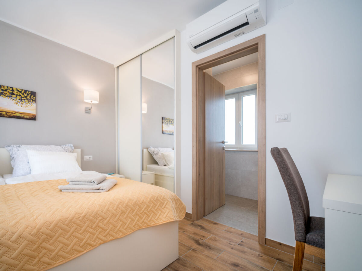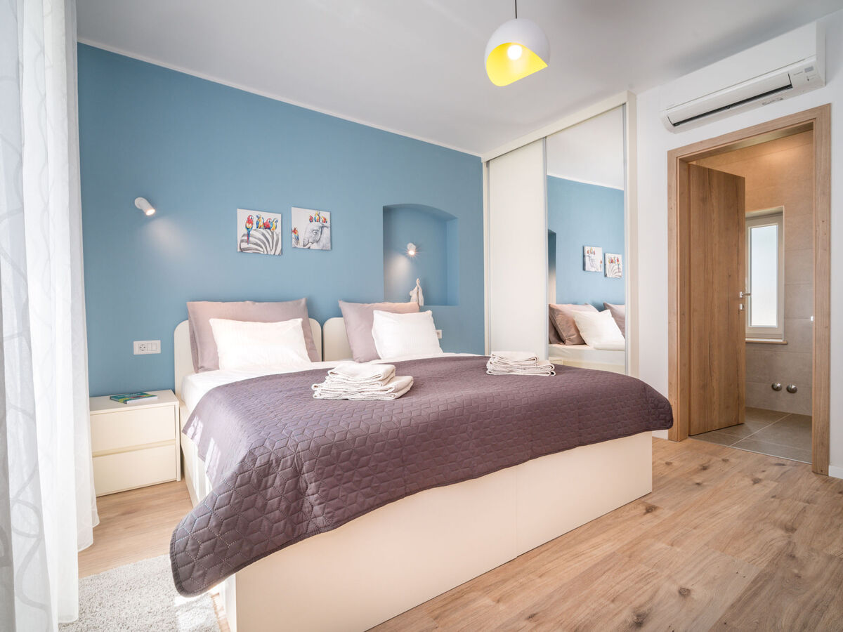 1 chambre avec 2 lits (90 cm, longueur 200 cm), bain/WC et air-conditionné.