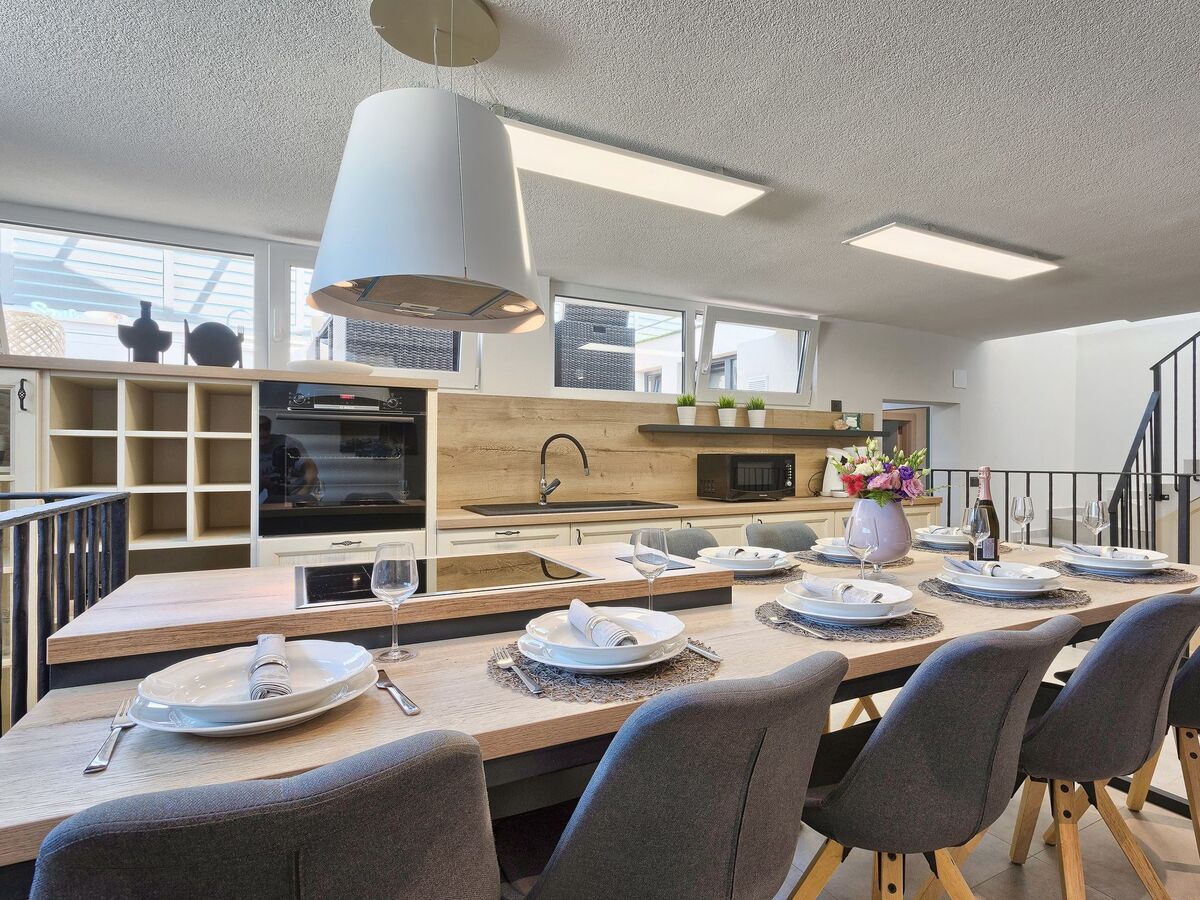 Au rez-de-chaussée vous trouverez la salle à manger/salon en un, la cuisine ouverte et une chambre.