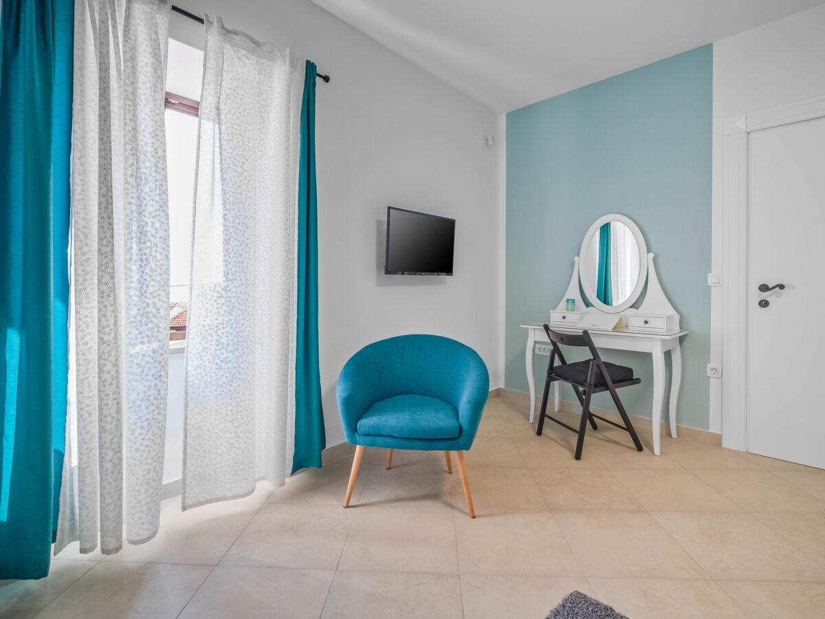 1 chambre avec 1 grand-lit (160 cm, longueur 200 cm), TV (satellite) (écran plat), air-conditionné.