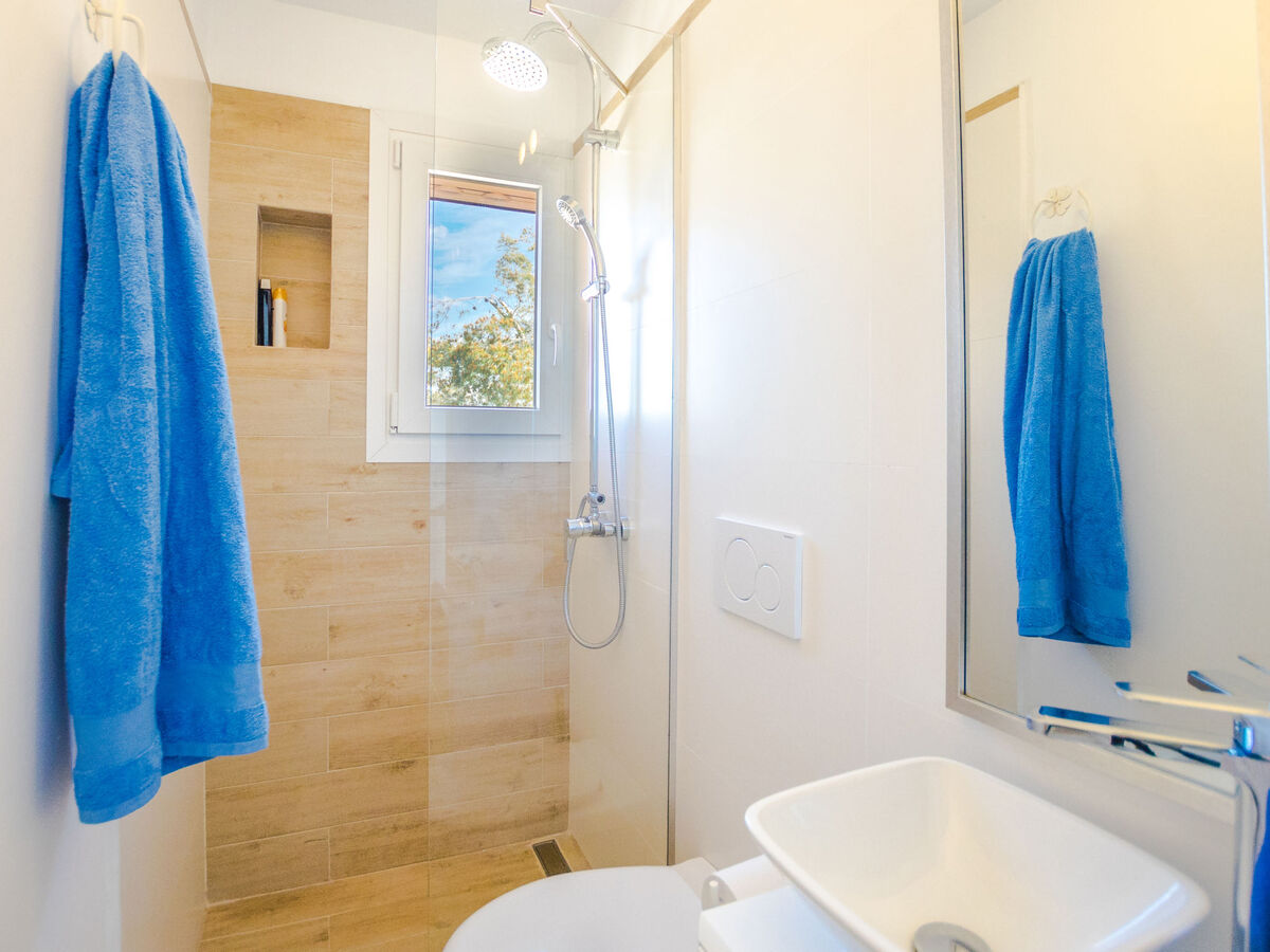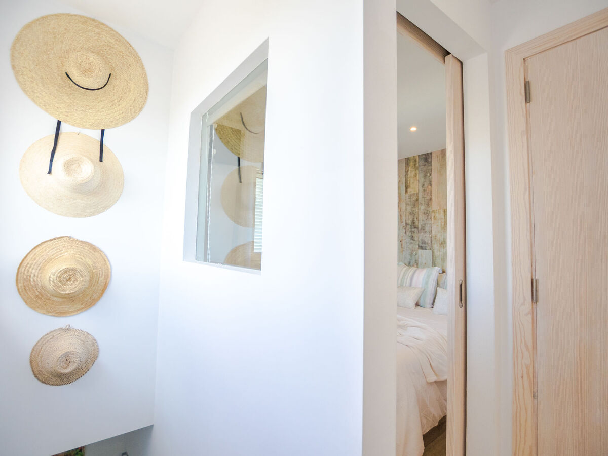 À l'étage supérieur: 1 chambre double avec porte coulissante avec 1 grand-lit (150 cm), air-conditionné, ventilateur et chauffage à air chaud.