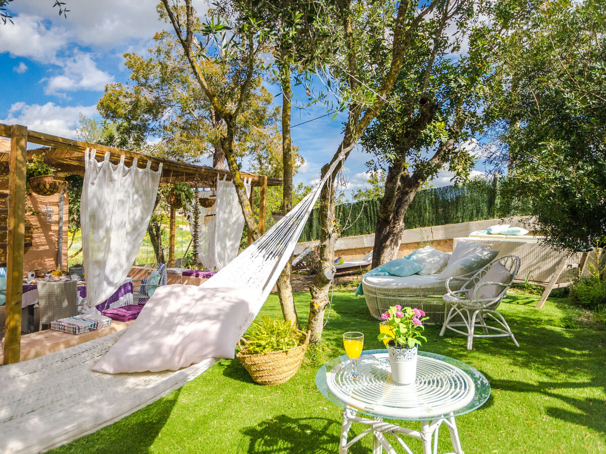 Douche extérieure, bain à remous , jardinet, tonnelle, meubles de jardin, barbecue.