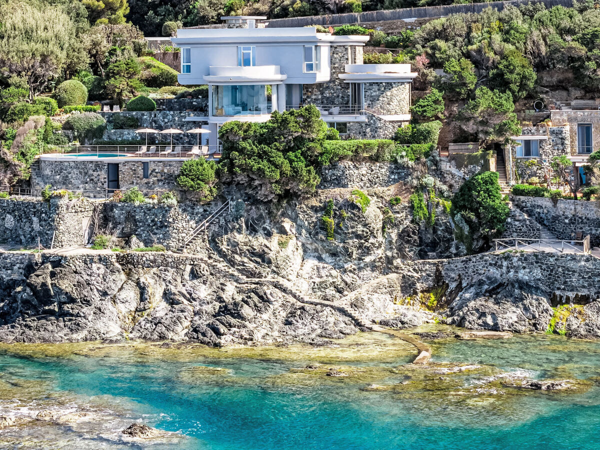 Villa moderne "Vistamare", de 3 étages, rénovée en 2022, environnée par les arbres.