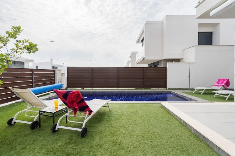Cette villa moderne à Orihuela offre un séjour chaleureux avec sa piscine privée et sa terrasse ensoleillée, idéale pour se détendre en famille ou entre amis. Pouvant accueillir jusqu'à huit personnes, la maison dispose d'un salon lumineux, de la climatisation et d'une cuisine bien équipée, idéale pour les repas partagés et un confort optimal. Un jardin avec terrasse vous permettra de profiter du grand air, tandis que vous pourrez dîner en terrasse le soir.