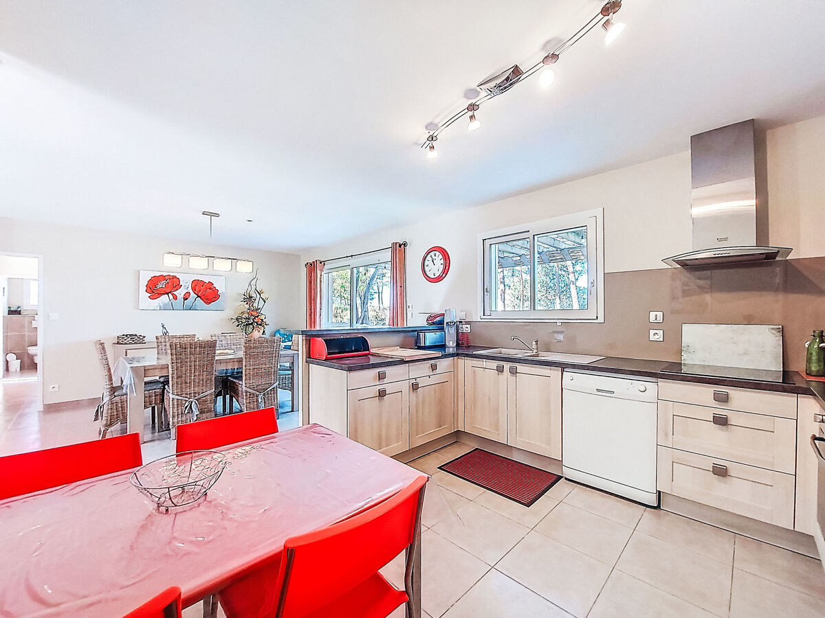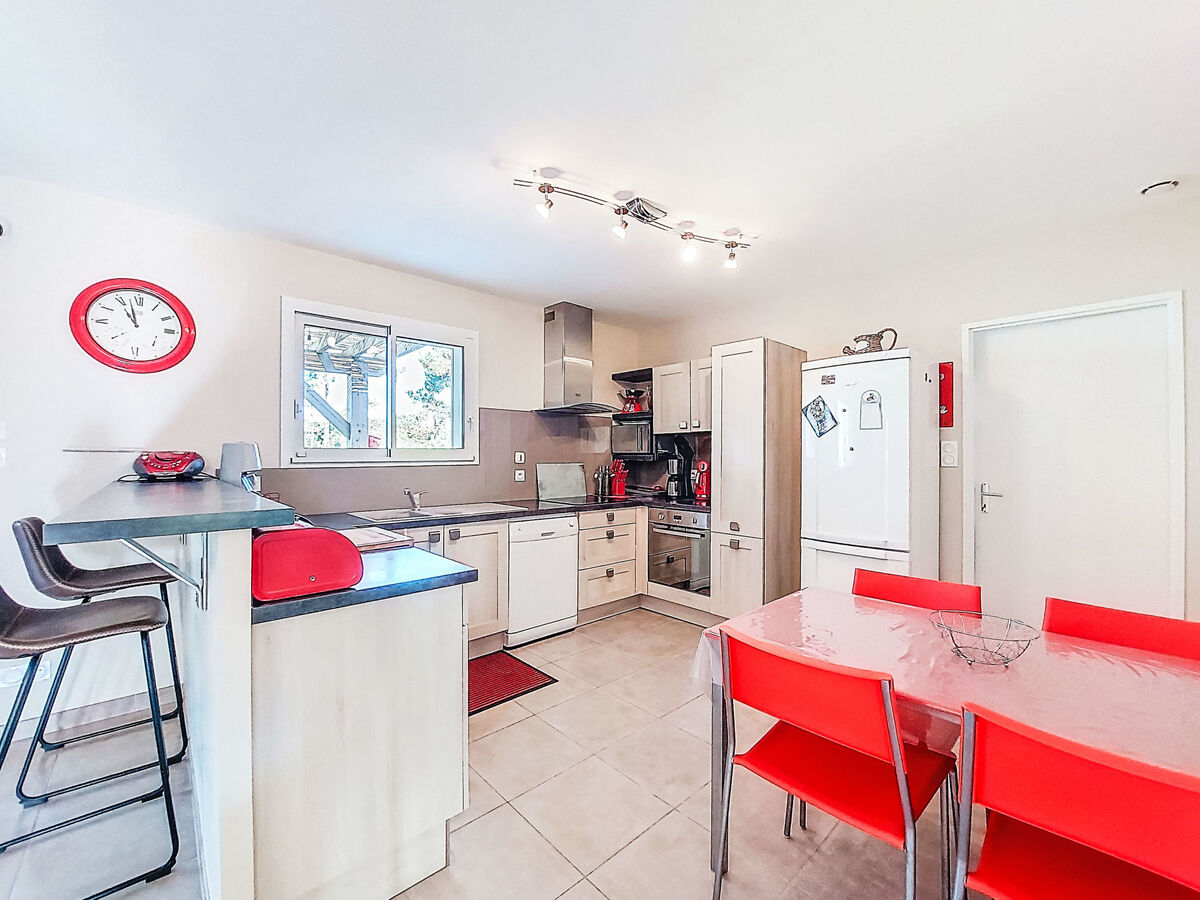 Cuisine ouverte (four, lave-vaisselle, 3 plaques à induction, grille-pain, bouilloire électrique, micro-ondes, congélateur, cafetière électrique, Capsules pour machine à café (Senséo) (NON INCLUSES)) avec bar.
