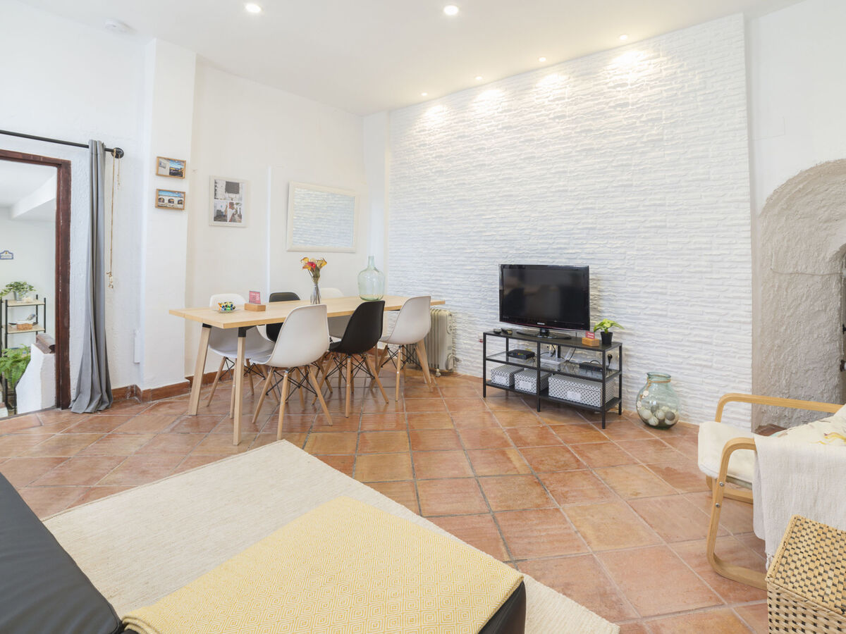 Complètement rénovée en 2018, aménagement très confortable et de bon goût: séjour/salle à manger avec table pour les repas et Télévision numérique.