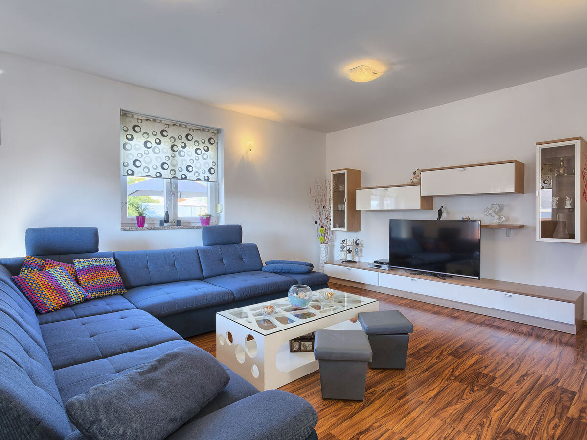 Séjour/salle à manger avec TV (satellite) (écran plat), air-conditionné.