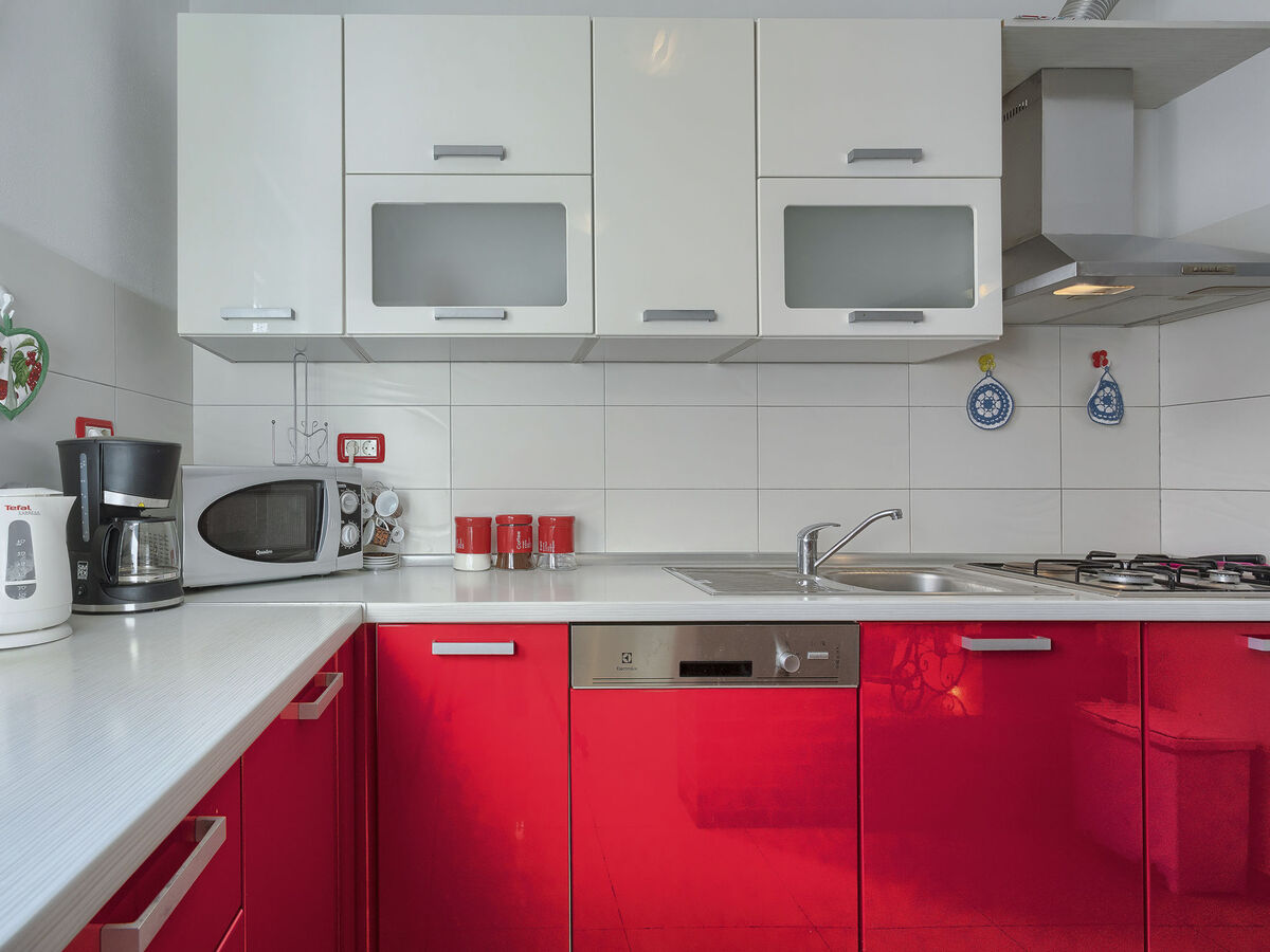 Cuisine ouverte (4 plaques de cuisson, four, lave-vaisselle, micro-ondes, congélateur, cafetière électrique).