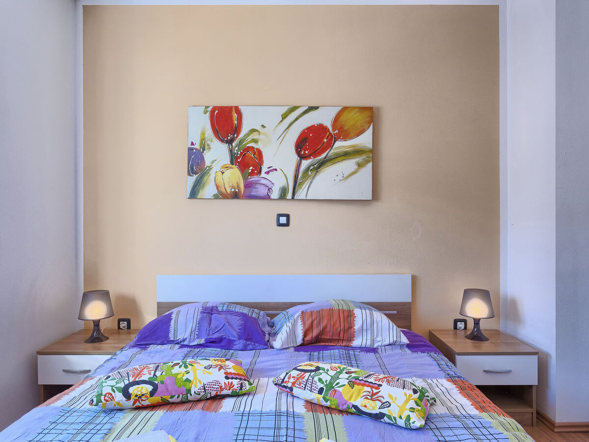 1 chambre avec 1 grand-lit (160 cm, longueur 200 cm).