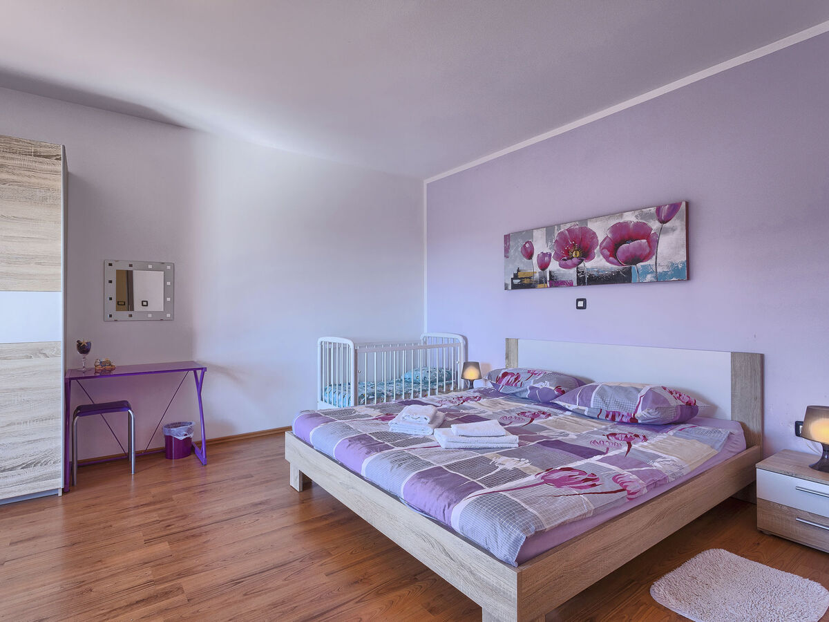 1 chambre avec 1 grand-lit (180 cm, longueur 200 cm).