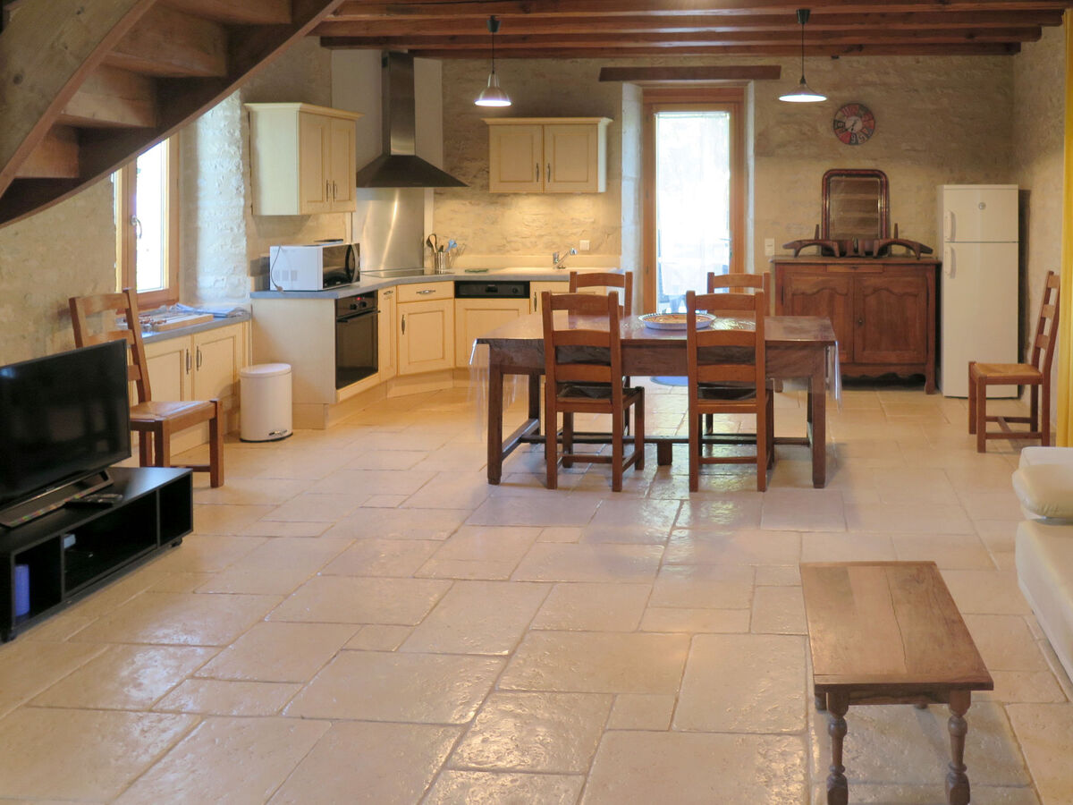 Spacieux, aménagement agréable: séjour/salle à manger avec table pour les repas, TV (satellite) et chaînes de TV internationales (écran plat).