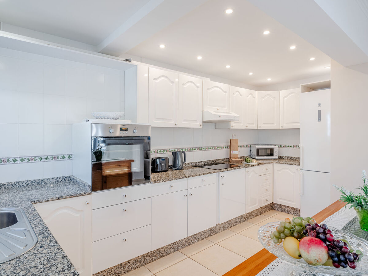 Cuisine ouverte (four, lave-vaisselle, 4 plaques vitrocéramiques, grille-pain, bouilloire électrique, micro-ondes, congélateur, cafetière électrique).