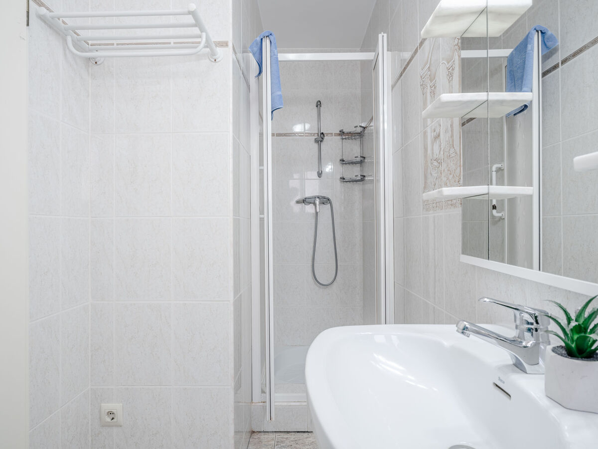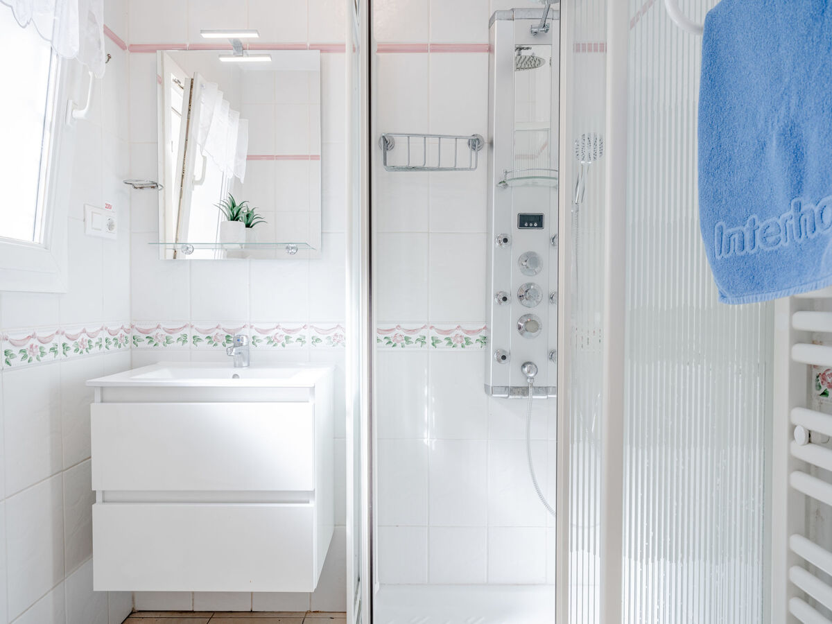 Douche extérieure, place de parking (pour 3 voitures) sur le terrain.