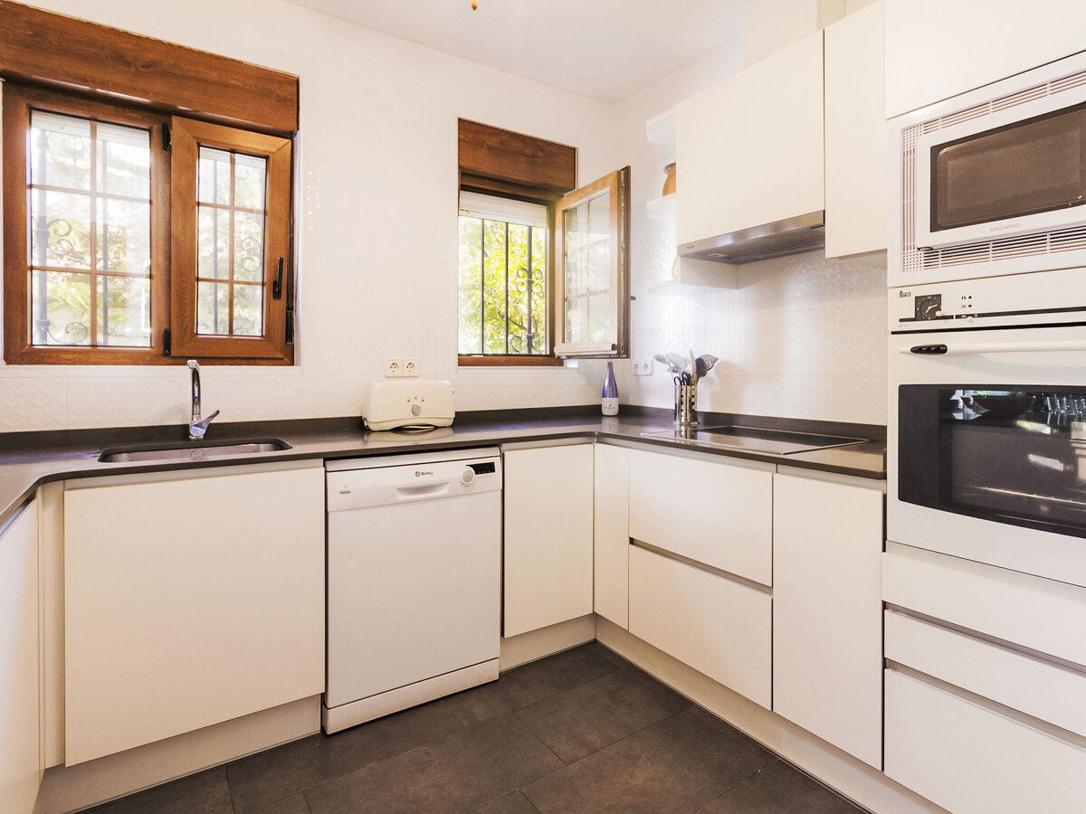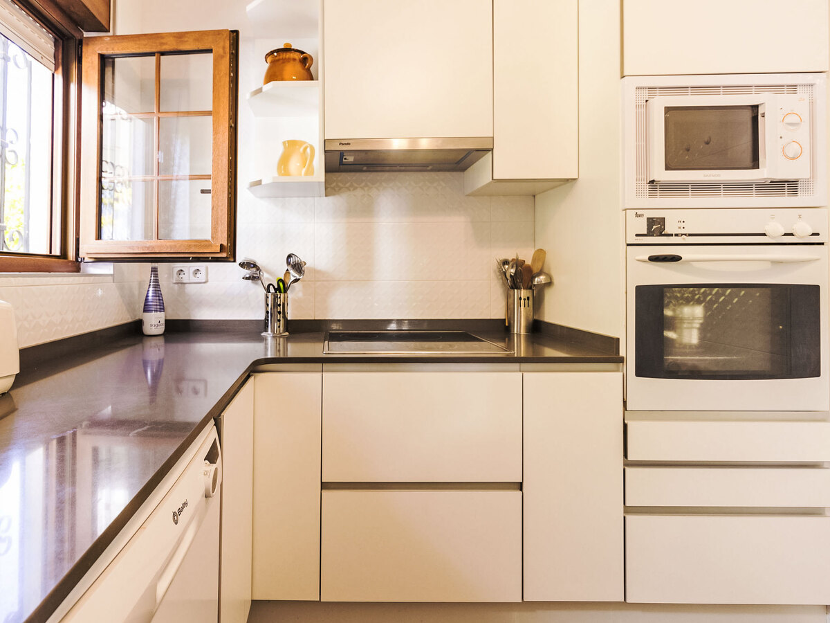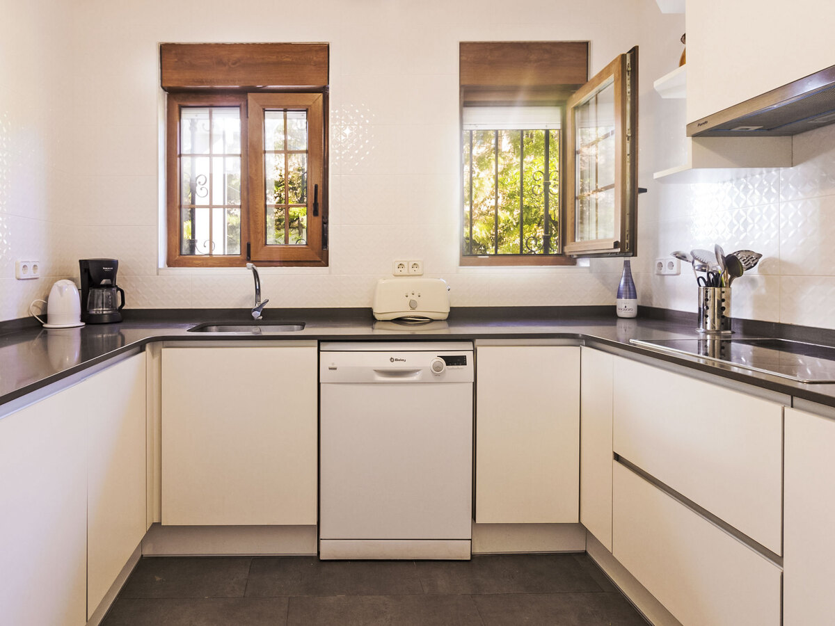Cuisine (four, lave-vaisselle, 3 plaques vitrocéramiques, grille-pain, bouilloire électrique, micro-ondes, cafetière électrique).