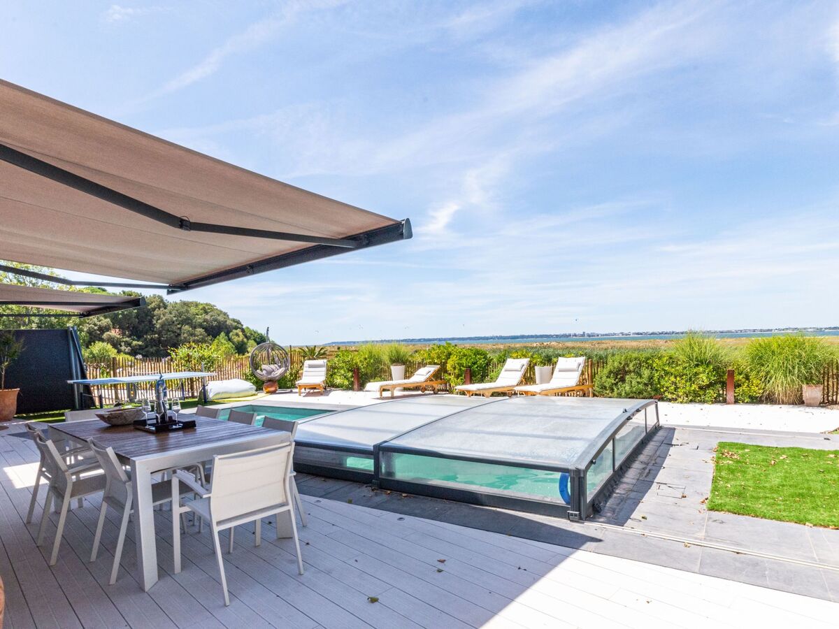 Sortie sur la terrasse, sur la piscine.