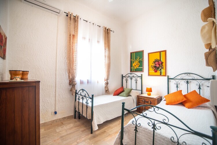 Rez-de-chaussée: (cuisine(foyer(4 foyers, gaz), bouilloire, grille-pain, cafetière/percolateur, four, micro ondes, combinaison réfrigérateur/congélateur), salle à manger-salon(TV(satellite), table), chambre(lit simple, lit simple, climatisation), chambre(lit simple, lit simple), chambre(lit simple), chambre avec salle de bains(lit double, douche, lavabo, WC, bidet, climatisation), salle de bains(baignoire, lavabo, WC, bidet, sèche-cheveux), véranda, véranda, solarium, lave-linge , jardin(privé), mobilier de jardin, barbecue, parking, piscine(privé, 8 x 4 m., ouvert de Mai jusqu'à (inclus) Sept), lit d'enfant, chaise haute, fer à repasser) Annexe Rez-de-chaussée: (chambre(lit double, climatisation), salle de bains(douche, lavabo, WC, bidet))
