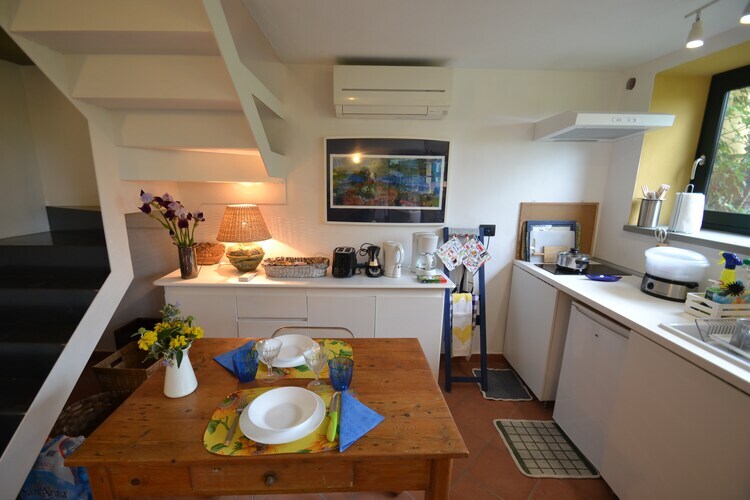 Rez-de-chaussée: (salon(coin salon), cuisine ouverte(bouilloire, grille-pain, plaque de cuisson(2 foyers, induction), cafetière/percolateur, micro ondes, lave-vaisselle , réfrigérateur), buanderie (sèche-linge, lave-linge ), climatisation) Au 1er étage: (chambre(lit double), salle de bains(douche, lavabo, WC)) jardin(privé, clôturé, 50 m2), jardin(partagé avec le propriétaire, 1500 m2), mobilier de jardin, transats, barbecue, piscine(partagé avec le propriétaire, 10 x 5 m., ouvert de Juin jusqu'à (inclus) Sept)
