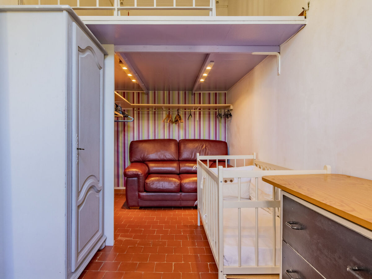 À l'étage supérieur: 1 chambre avec 1 grand-lit (160 cm).
