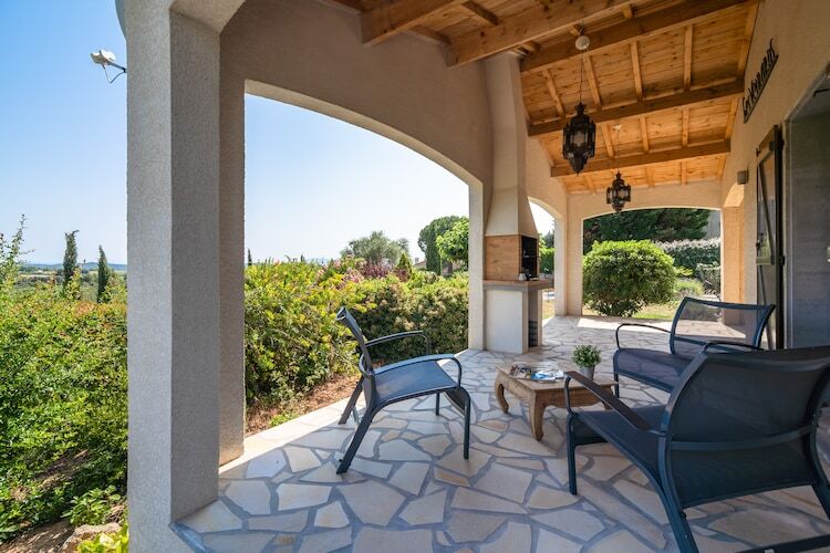 Rez-de-chaussée: (Salle de séjour(TV, poêle, installation stéréo), salle à manger(table), cuisine ouverte(foyer, cafetière/percolateur, four/micro-onde combinés, lave-vaisselle , combinaison réfrigérateur/congélateur), chambre(Lit superposé), chambre(2x lit simple(80 x 200 cm)), chambre(2x lit simple(80 x 200 cm)), salle de bains(baignoire, douche, lavabo, WC), salle de bains(douche, lavabo, WC), réserve(lave-linge )) Bain à bulles, portes-fenêtres, climatisation, terrasse, jardin(privé, 2500 m2), mobilier de jardin, parking, trampoline, piscine(privé, chauffée, 8 x 4 m., ouvert de Avr jusqu'à (inclus) Oct), équipements de jeux, salon de jardin