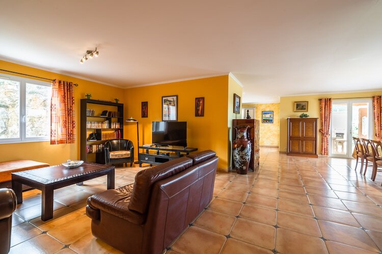 Rez-de-chaussée: (Salle de séjour(TV, coin salon, Lecteur DVD, Lecteur Blu-ray, radio, climatisation), cuisine ouverte(bouilloire, grille-pain, hotte, four, four/micro-onde combinés, micro ondes, lave-vaisselle , réfrigérateur, congélateur, climatisation), WC, réserve(lave-linge , table à repasser, fer à repasser)) Au 1er étage: (chambre(lit double(140 x 200 cm), climatisation), chambre(lit double(140 x 200 cm), climatisation), chambre(lit double(140 x 200 cm), climatisation), salle de bains(baignoire, douche, lavabo, WC)) climatisation, terrasse, jardin(clôturé, 2000 m2), mobilier de jardin, transats, barbecue(charbon de bois), parking, piscine(privé, alarme de piscine, 10 x 5 m., ouvert de Mai jusqu'à (inclus) 1/2 Sept)