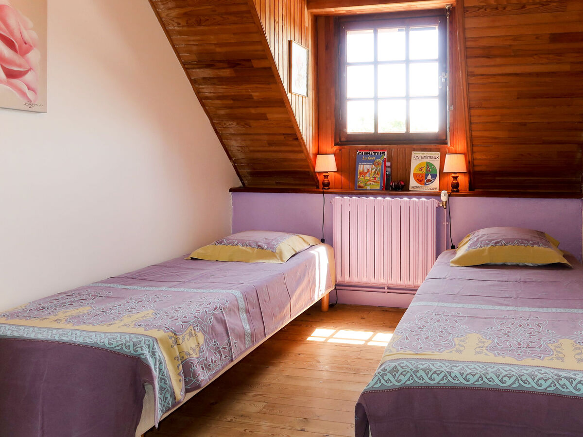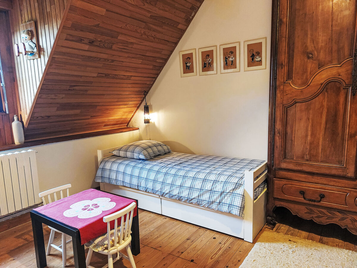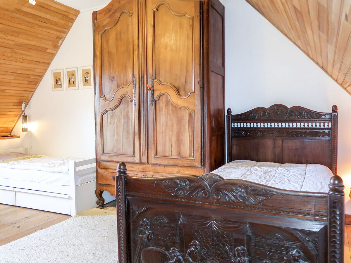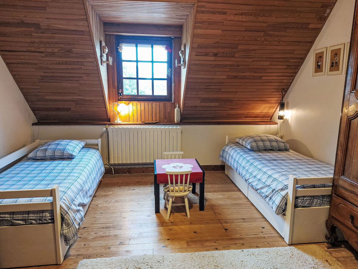 1 chambre, mansardée avec 2 lits (80 cm, longueur 190 cm), 1 grand-lit (120 cm, longueur 190 cm).