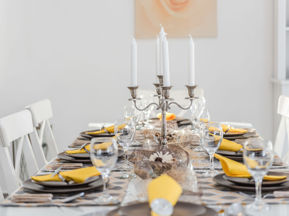 Cuisine ouverte (four, lave-vaisselle, 4 plaques vitrocéramiques, micro-ondes, congélateur, cafetière électrique).