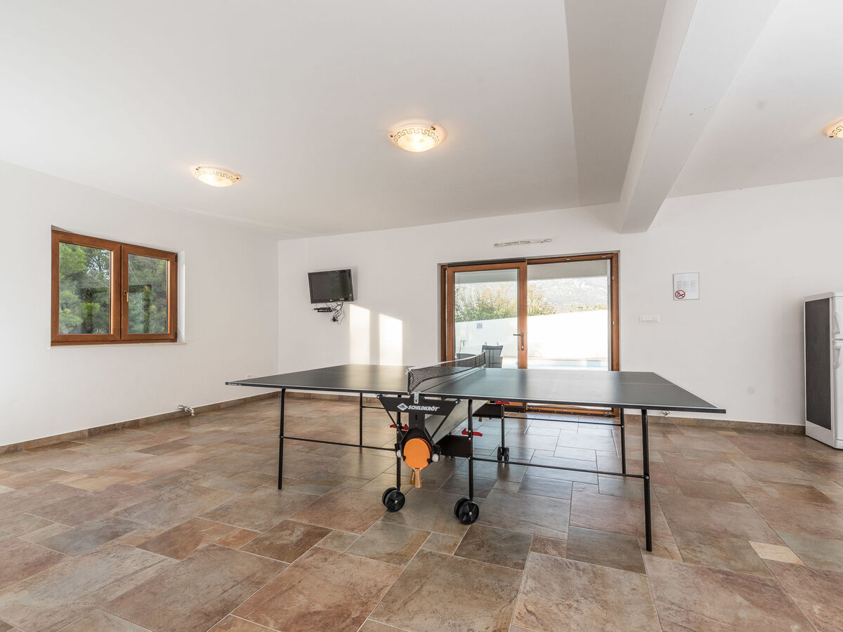 À l'étage inférieur: salle avec ping-pong, fléchettes, TV (satellite) (écran plat), climatisation, sortie sur la terrasse.