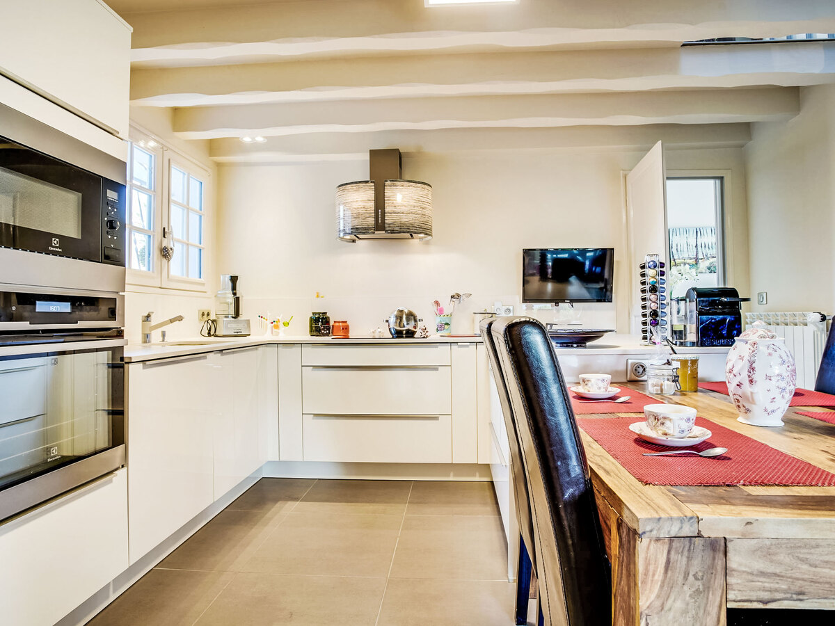 Cuisine ouverte 15 m2 (four, lave-vaisselle, 4 plaques à induction, grille-pain, bouilloire électrique, micro-ondes, congélateur, cafetière électrique, Capsules pour machine à café (Moulinex) (NON INCLUSES)).