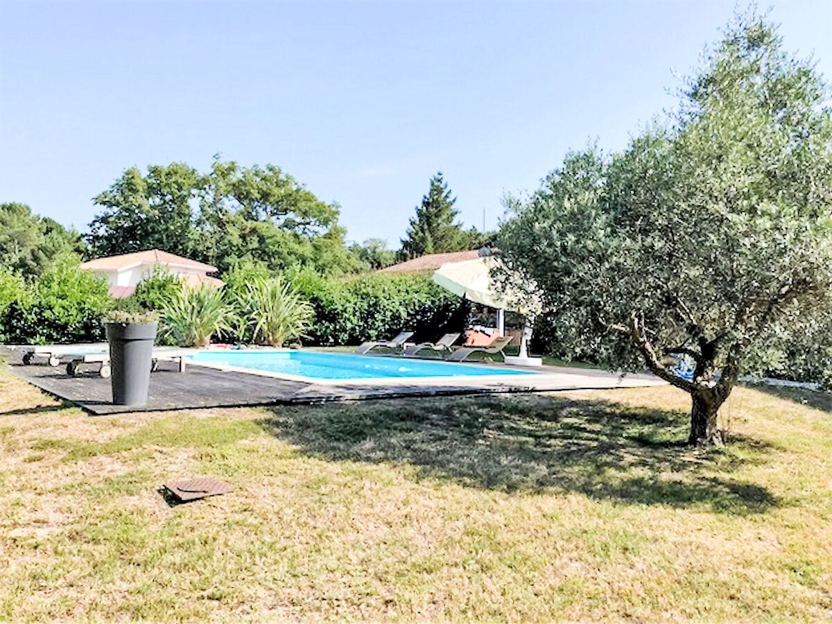 A usage privé: grand jardin 4'500 m2 (pas clôturé) arbres, piscine rectangulaire (11 x 5 m, profondeur 100 - 180 cm, disponibilité saisonnière: 01.Jun.