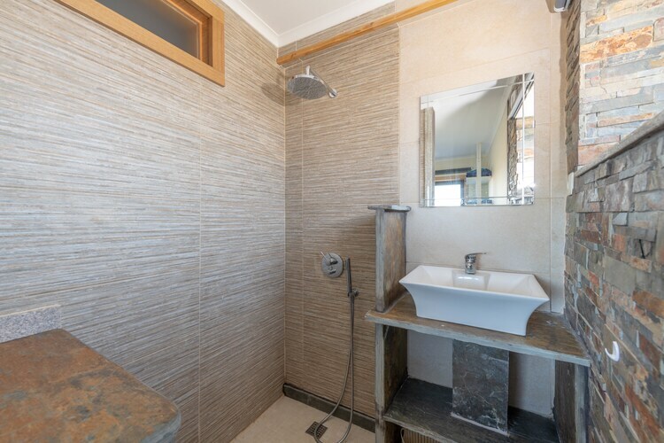 Vous entrez dans la villa par le patio où vous trouverez le barbecue. À travers la cuisine ouverte, vous entrez directement dans le salon spacieux avec accès à la terrasse par une porte coulissante en verre. Il y a 3 chambres à coucher avec salle de bain privée et une salle de bain séparée dans le couloir. Les salles de bains sont équipées d'une douche à effet pluie et d'un radiateur sèche-serviettes électrique. La piscine est entièrement en ardoise et est équipée d'une installation à contre-courant. Il y a un espace séparé où vous pourrez vous détendre dans les bulles du jacuzzi.