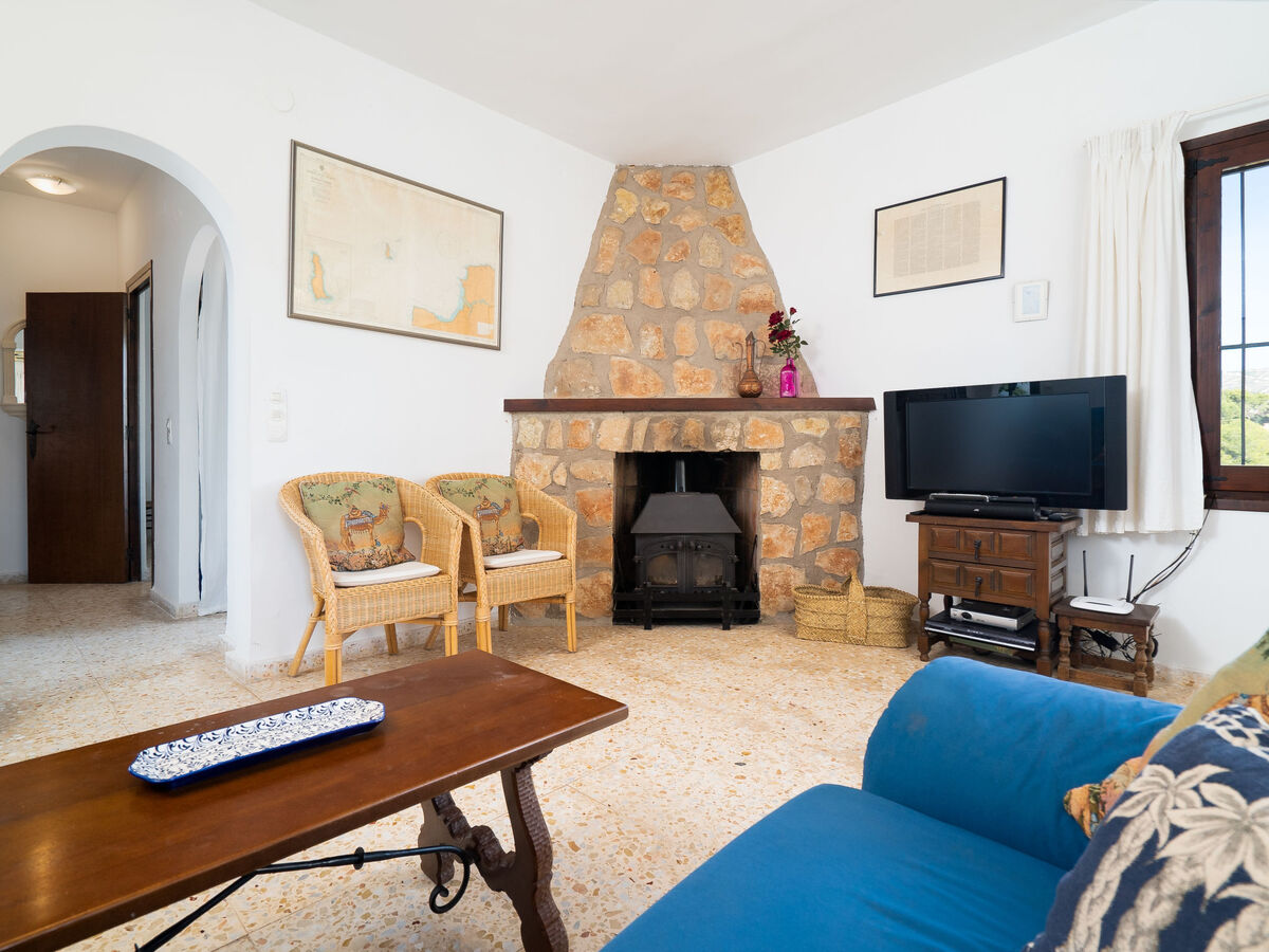 Aménagement fonctionnel et rustique: séjour/salle à manger avec poêle suédois, TV (satellite) et air-conditionné.