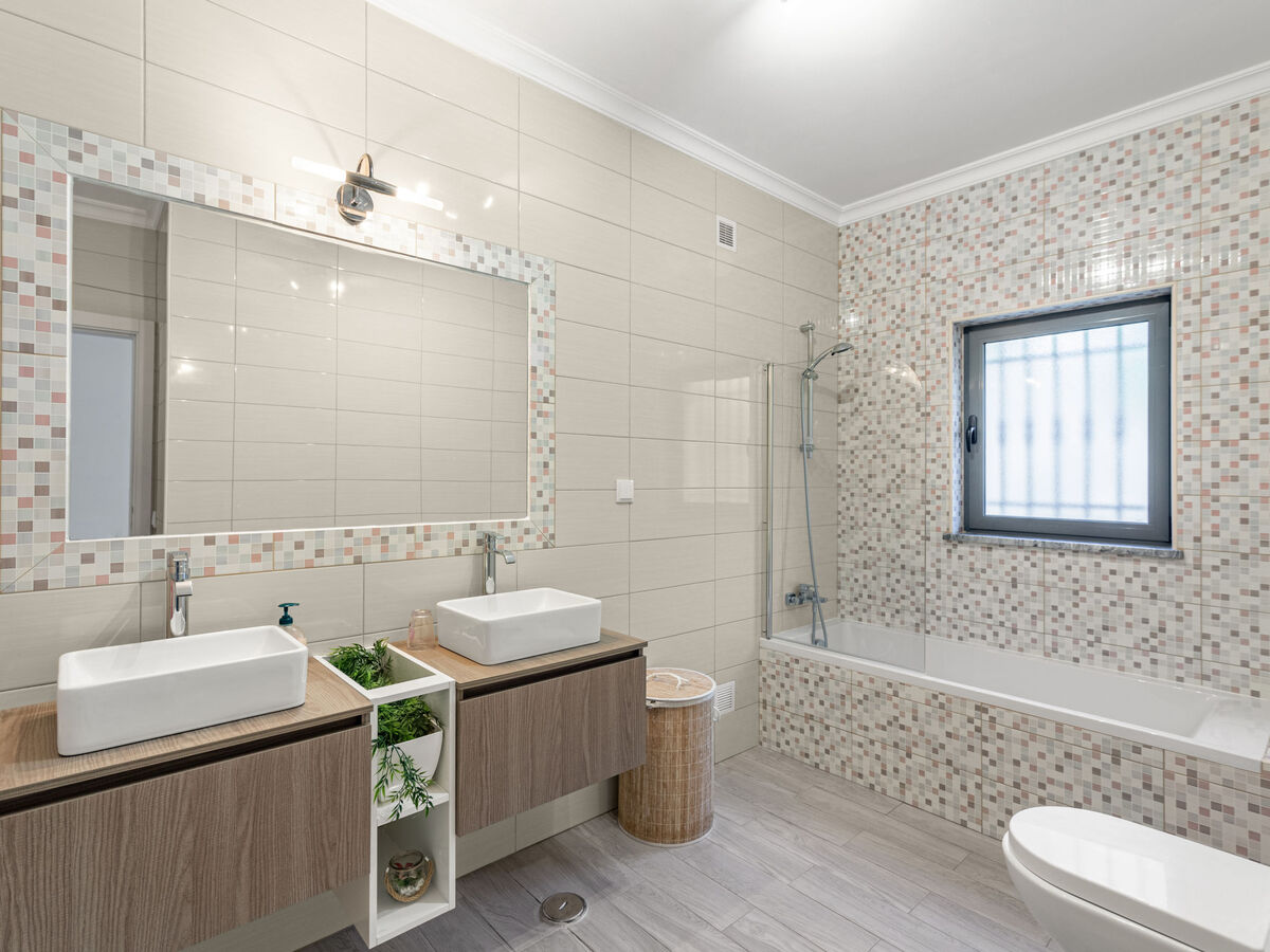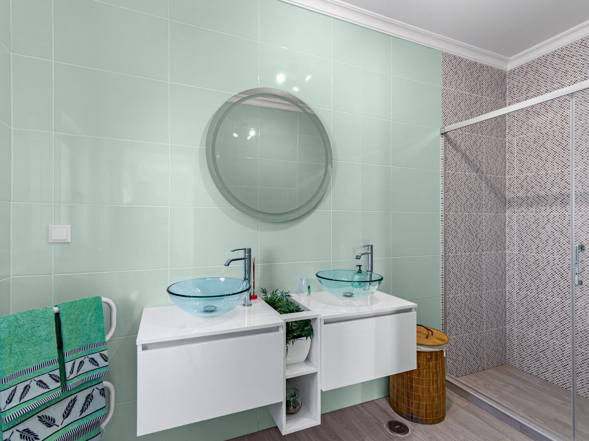 1 chambre avec 2 lits (100 cm, longueur 200 cm), bain/WC et double vasque.