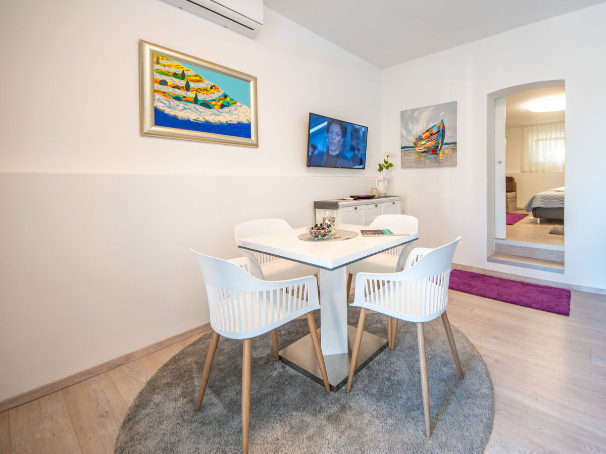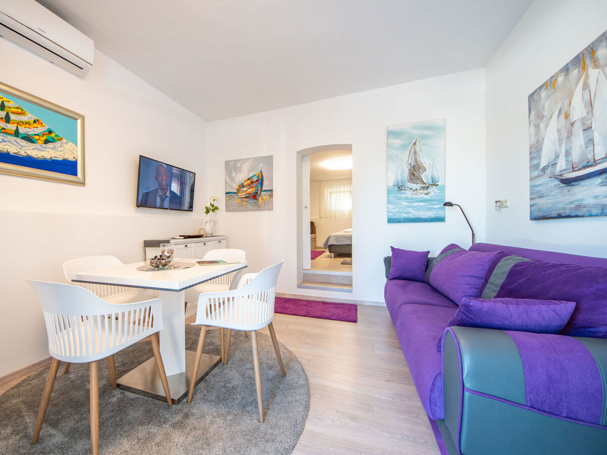 Séjour/salle à manger avec 1 divan-lit double (140 cm, longueur 190 cm), TV (satellite) (écran plat), air-conditionné.
