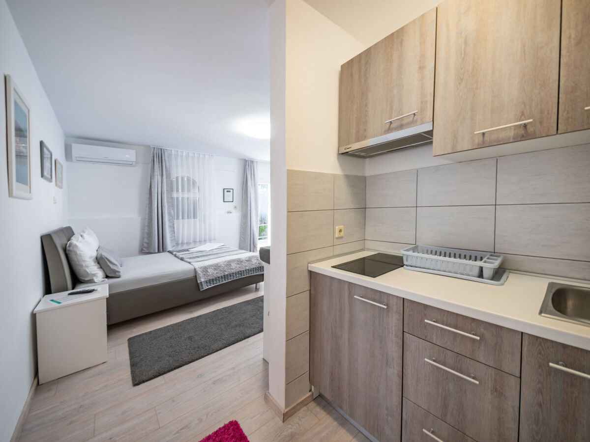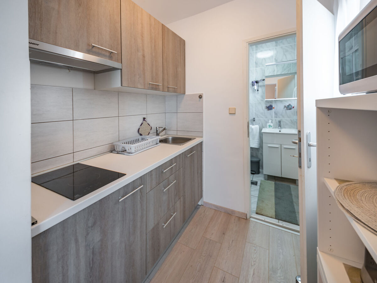 Il se compose d'un salon / chambre à coucher et d'une cuisine ouverte.