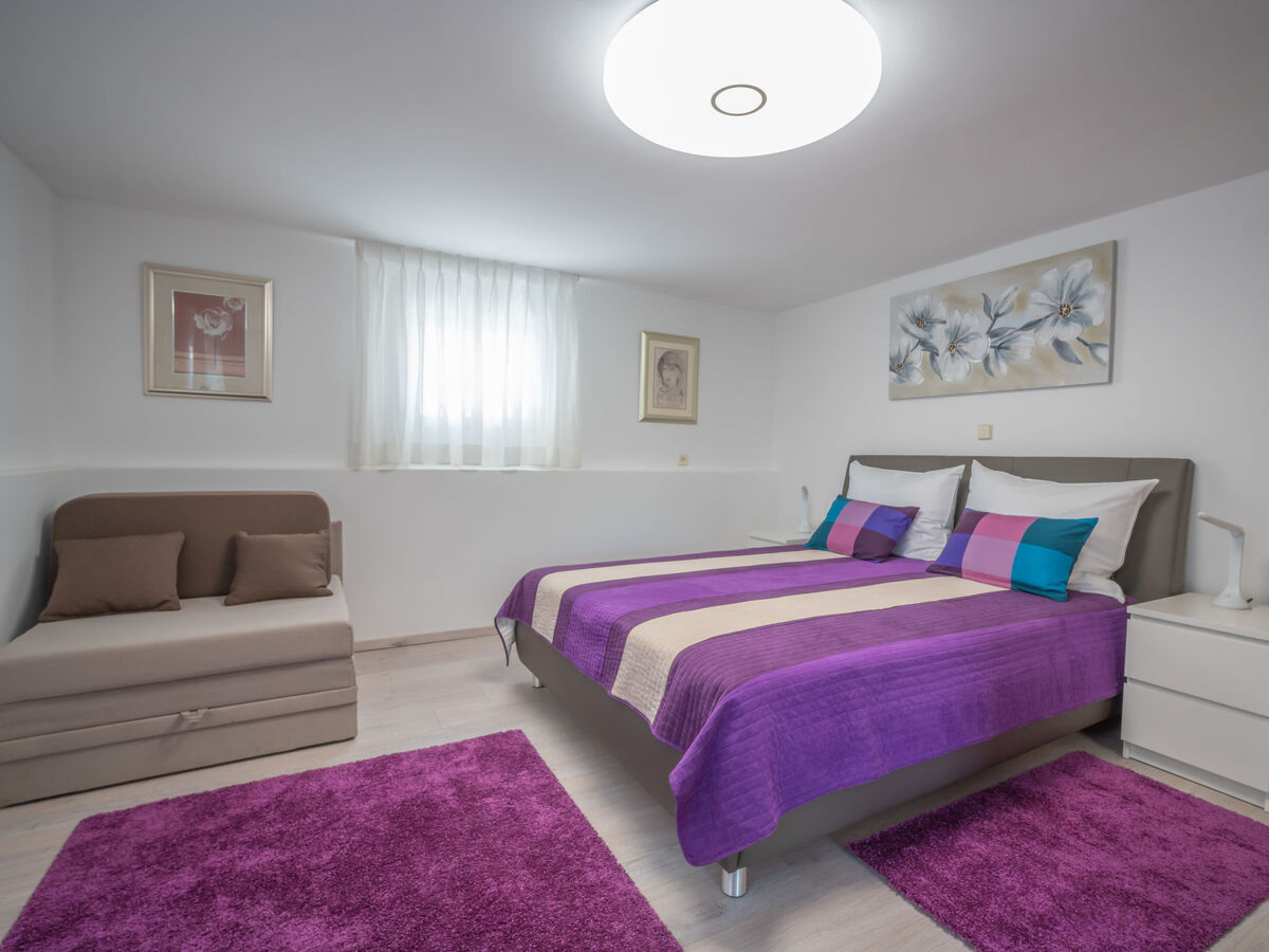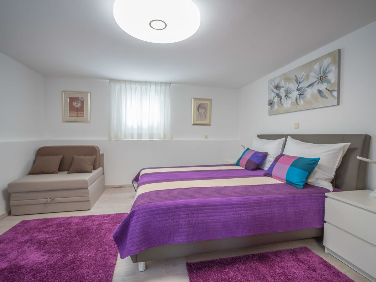 1 chambre avec 1 grand-lit (180 cm, longueur 200 cm).